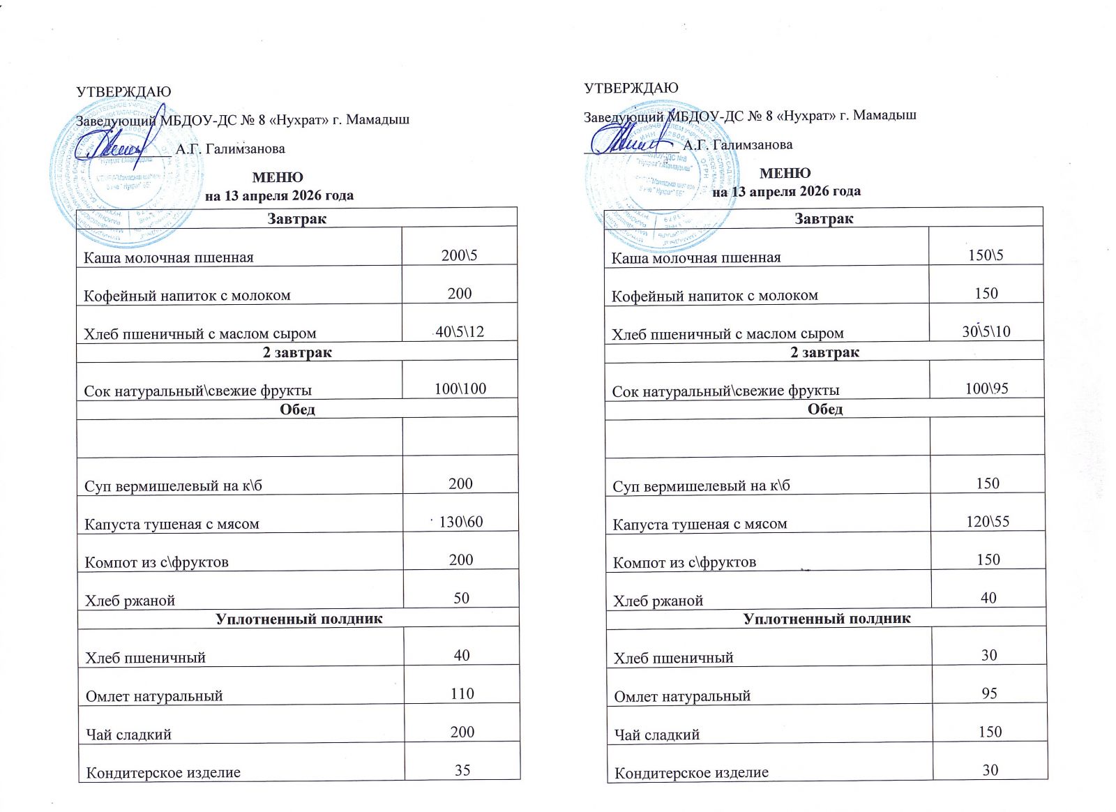 Меню 13.04.2026
