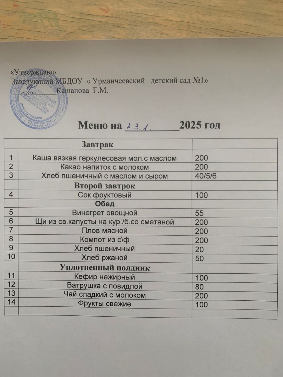 меню на 23.01.2025