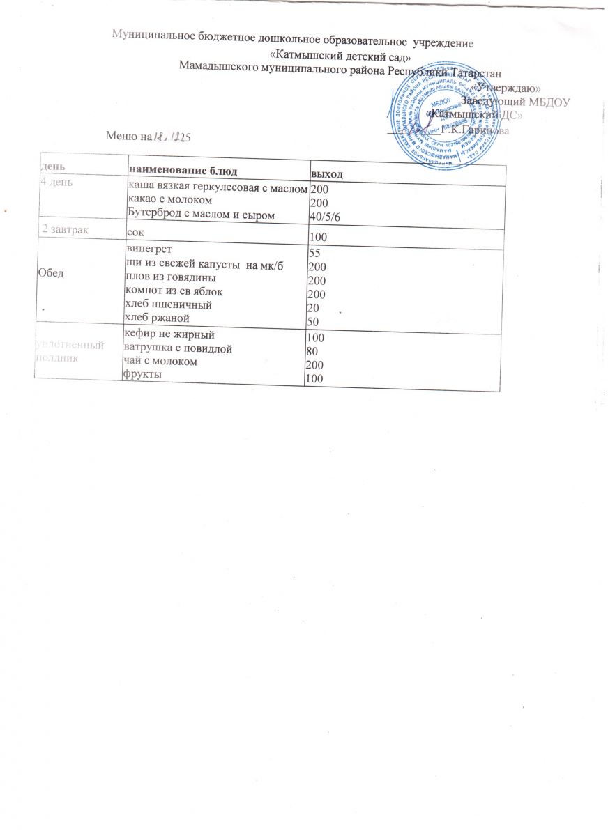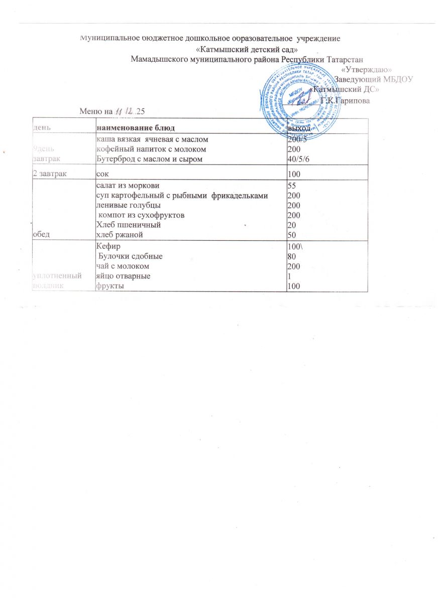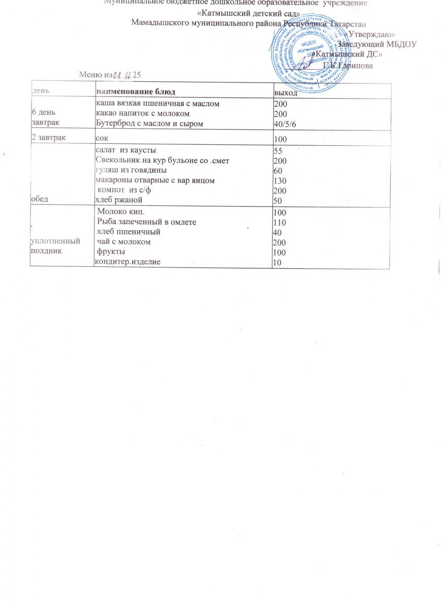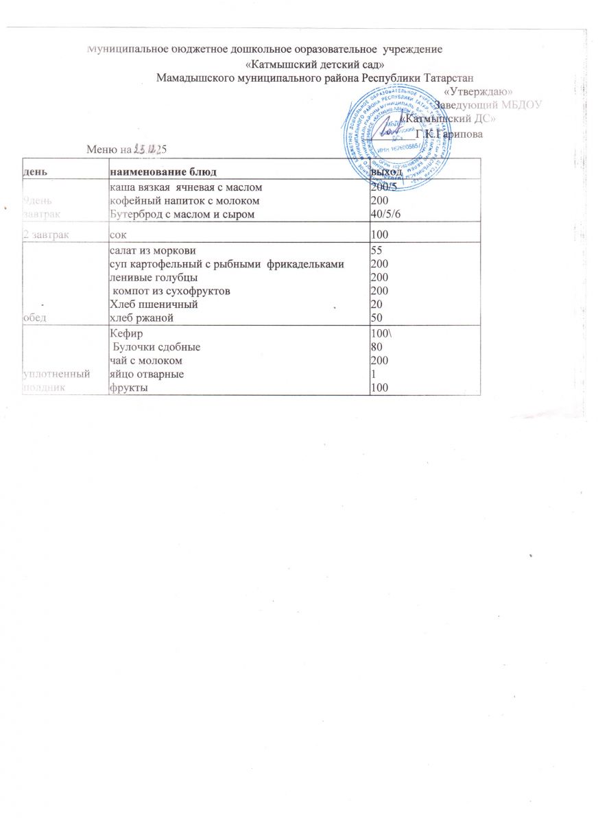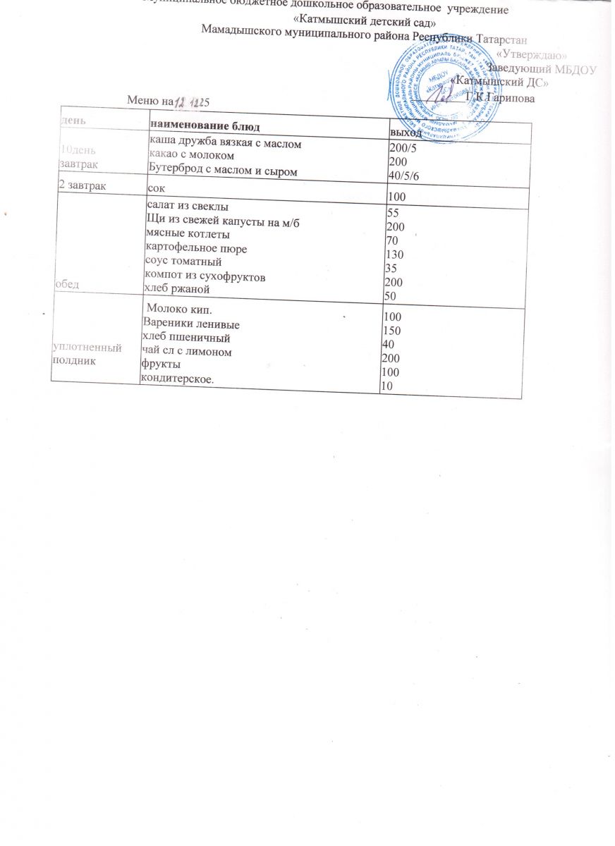 Муниципальное бюджетное дошкольное образовательное учреждение «Катмышский детский сад» Мамадышского муниципального района РТ