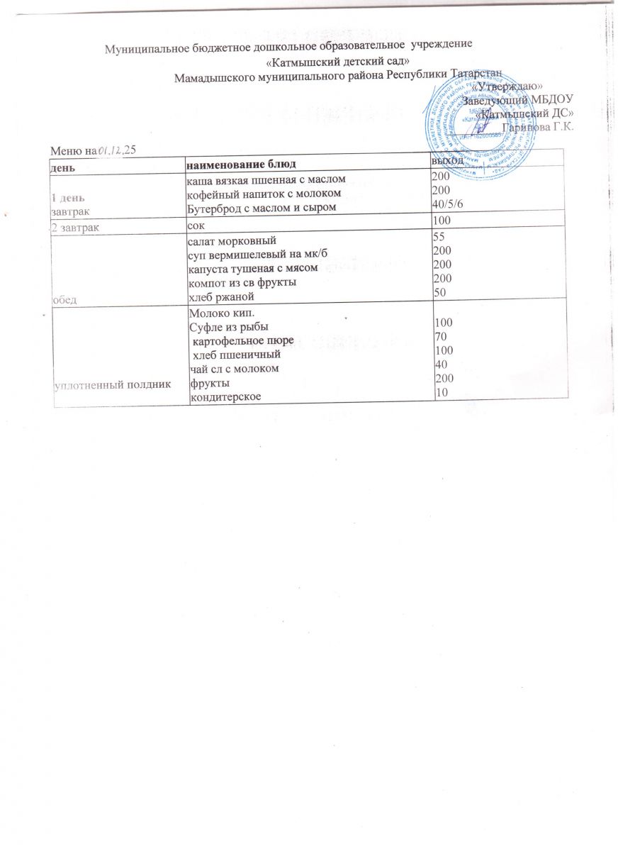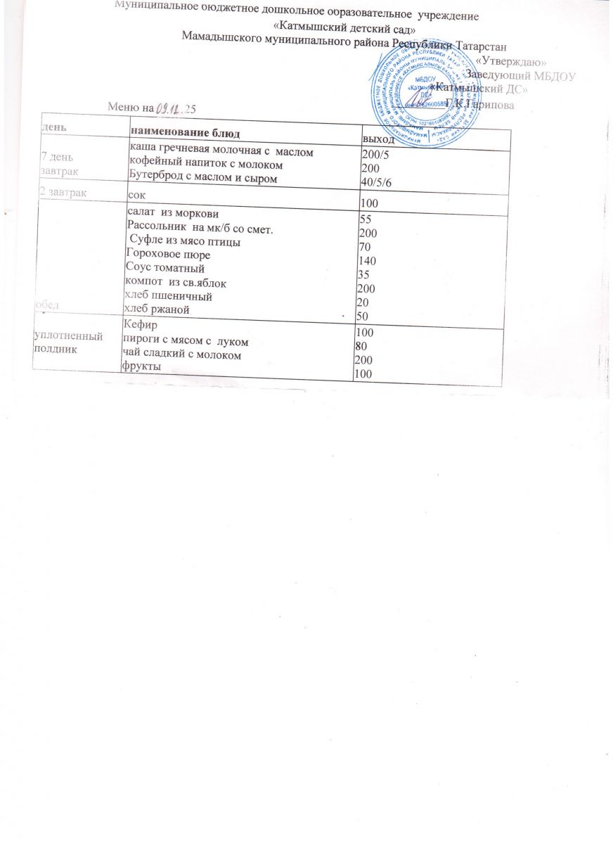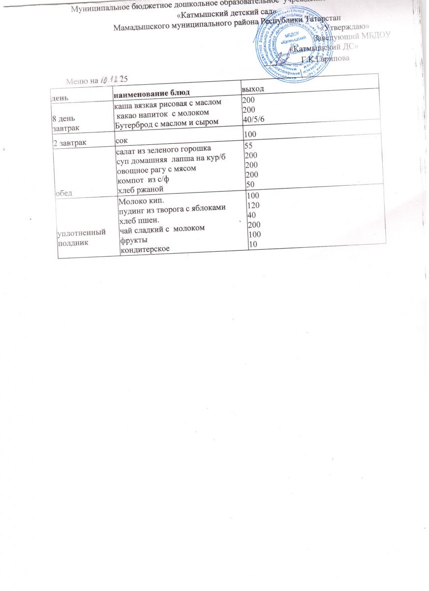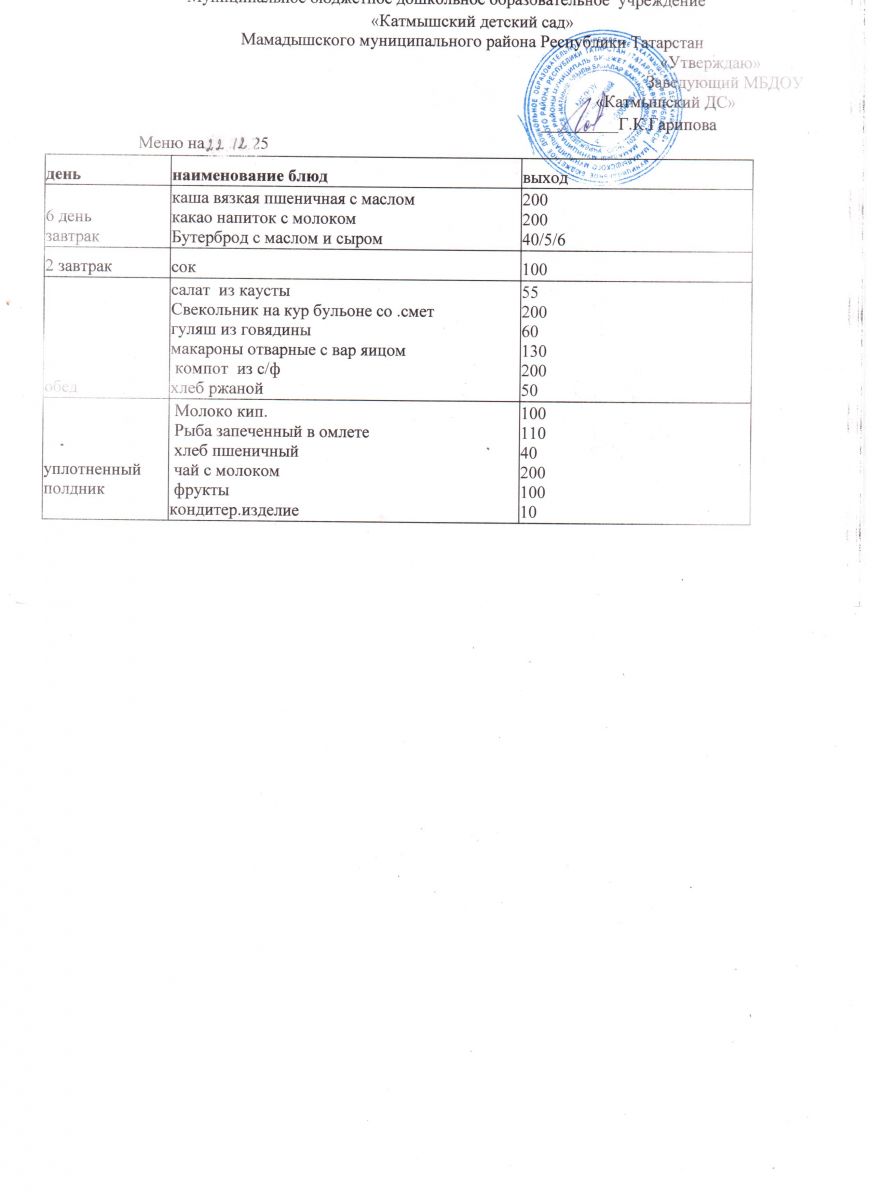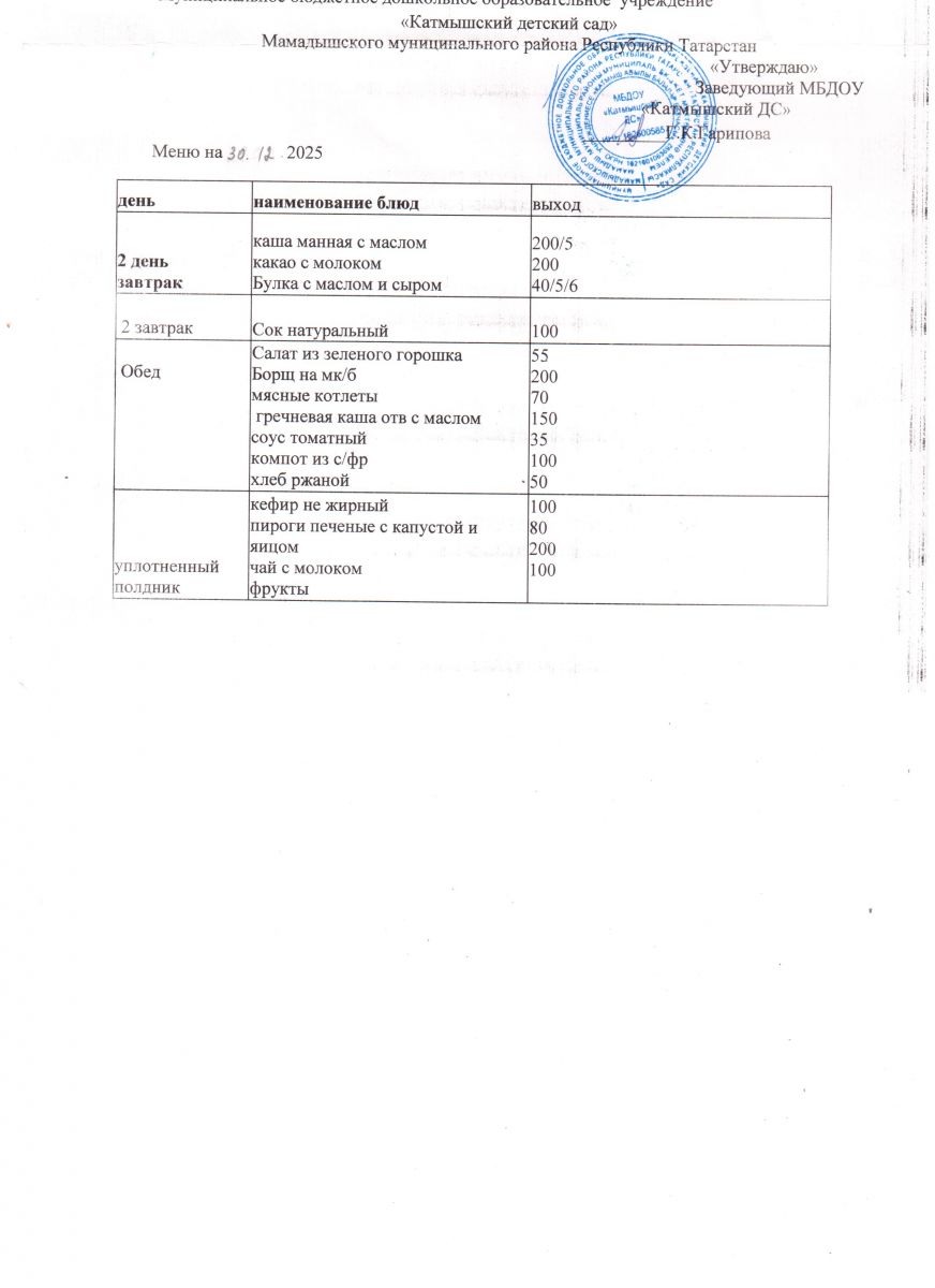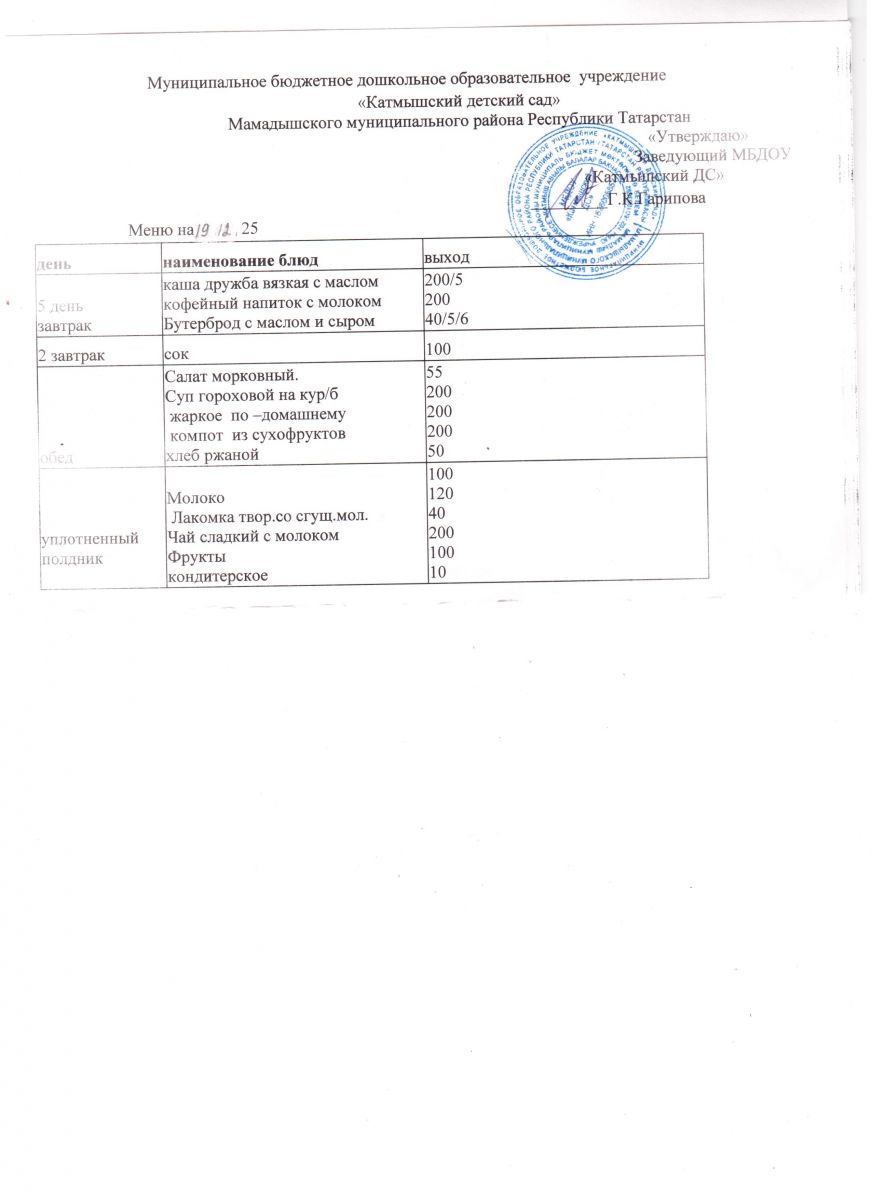 Муниципальное бюджетное дошкольное образовательное учреждение «Катмышский детский сад» Мамадышского муниципального района РТ