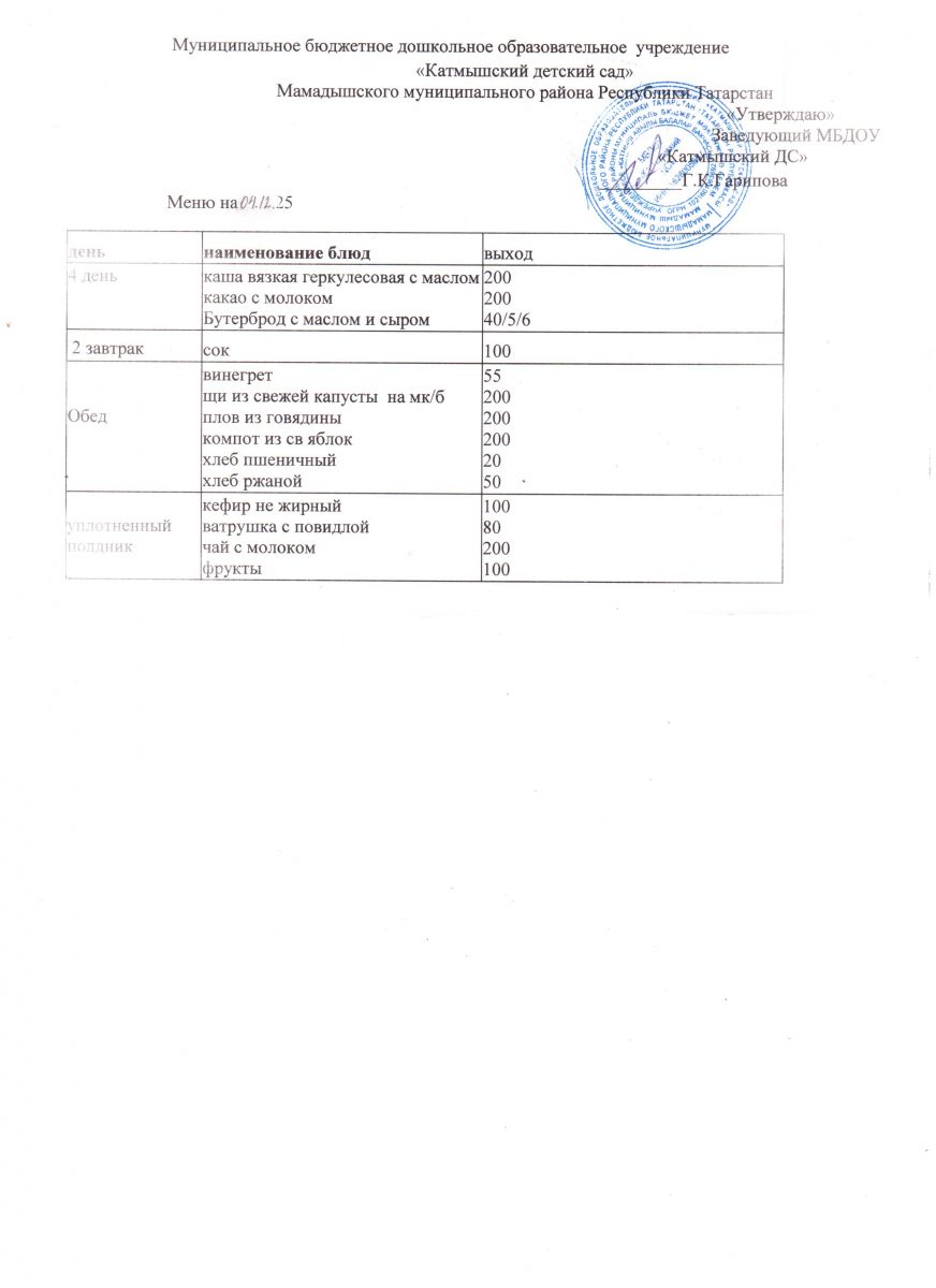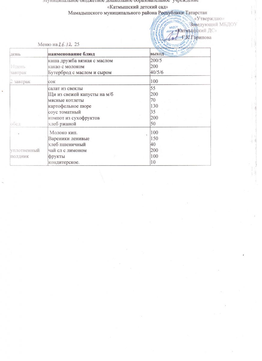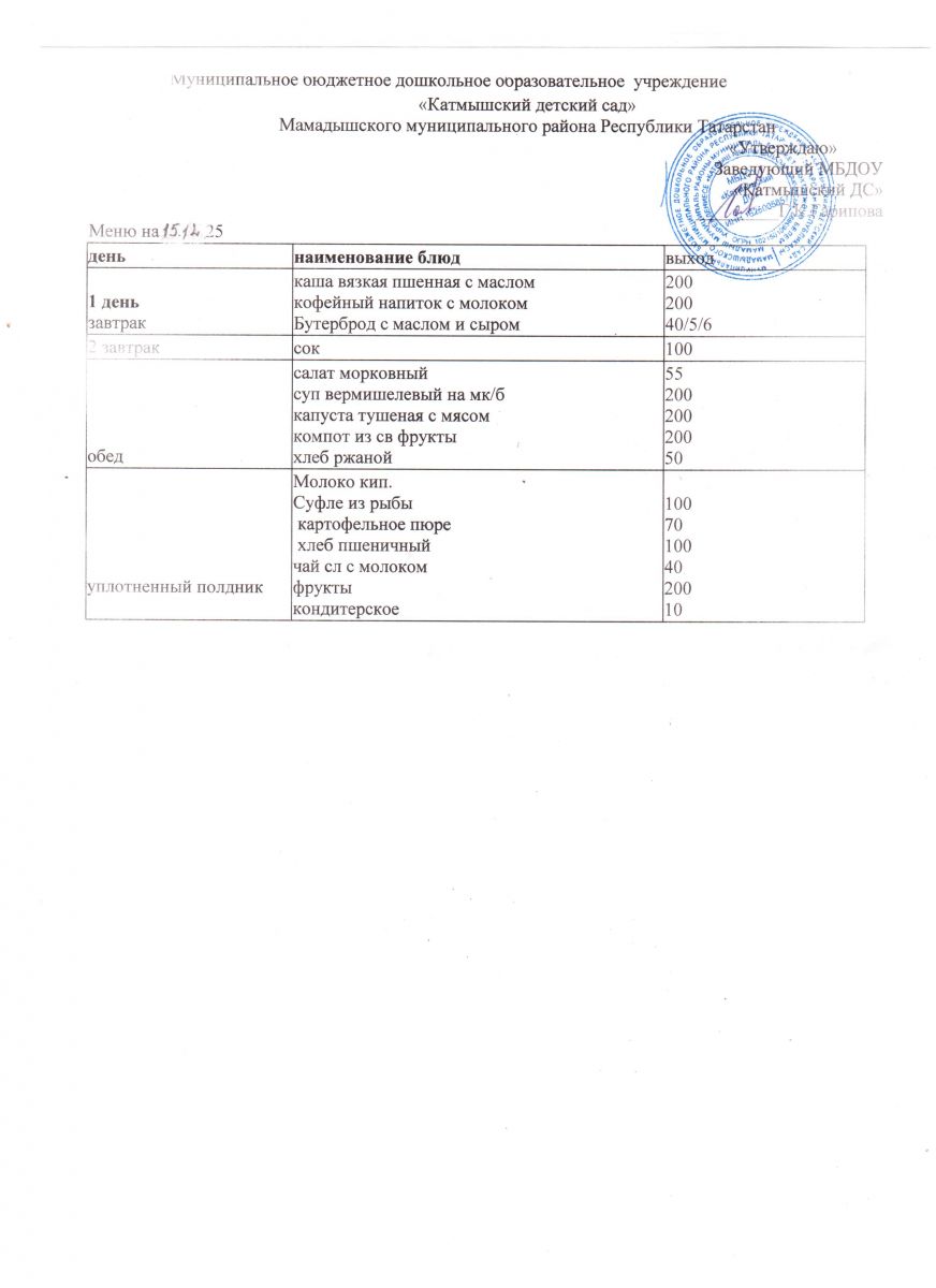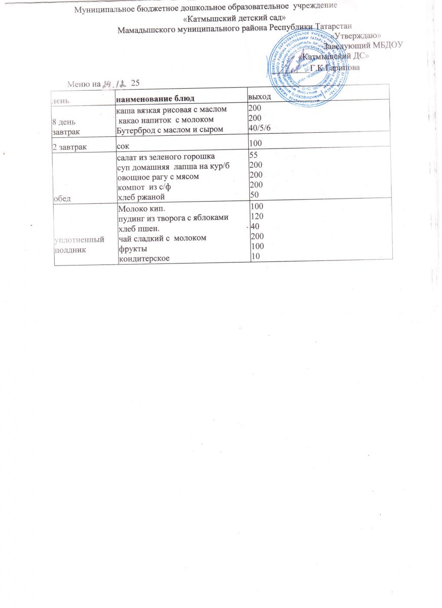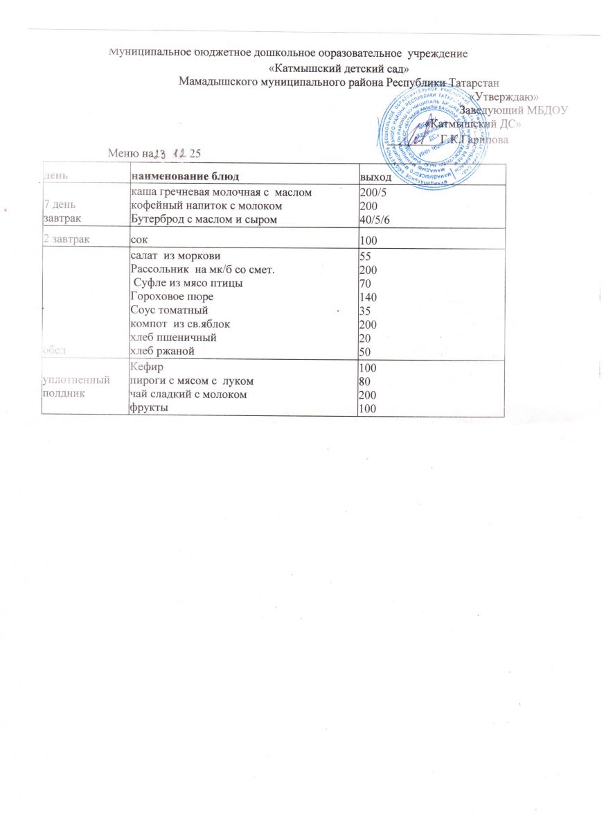 Муниципальное бюджетное дошкольное образовательное учреждение «Катмышский детский сад» Мамадышского муниципального района РТ