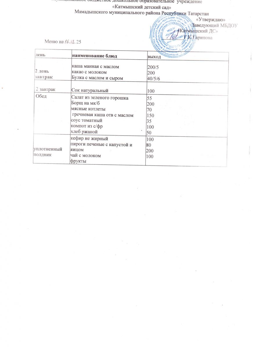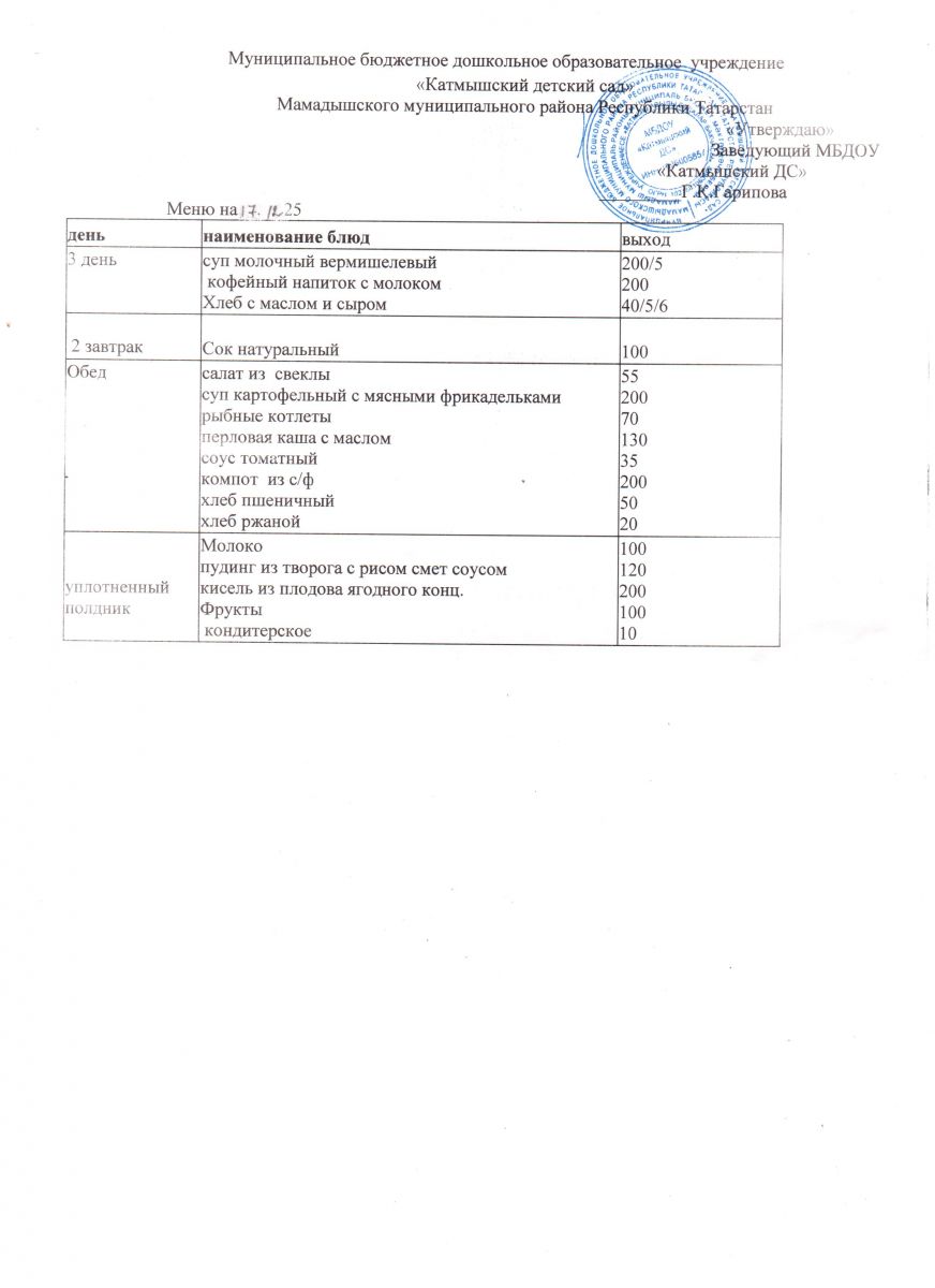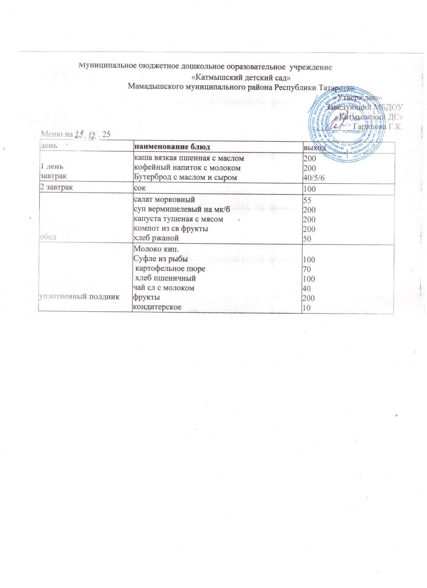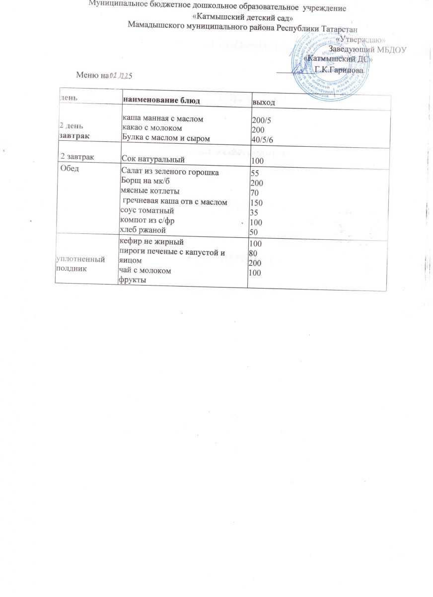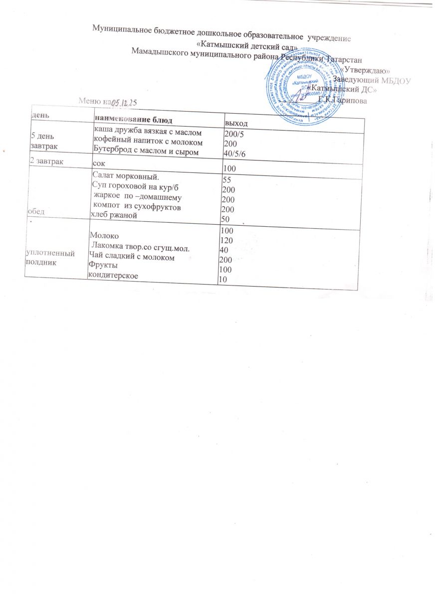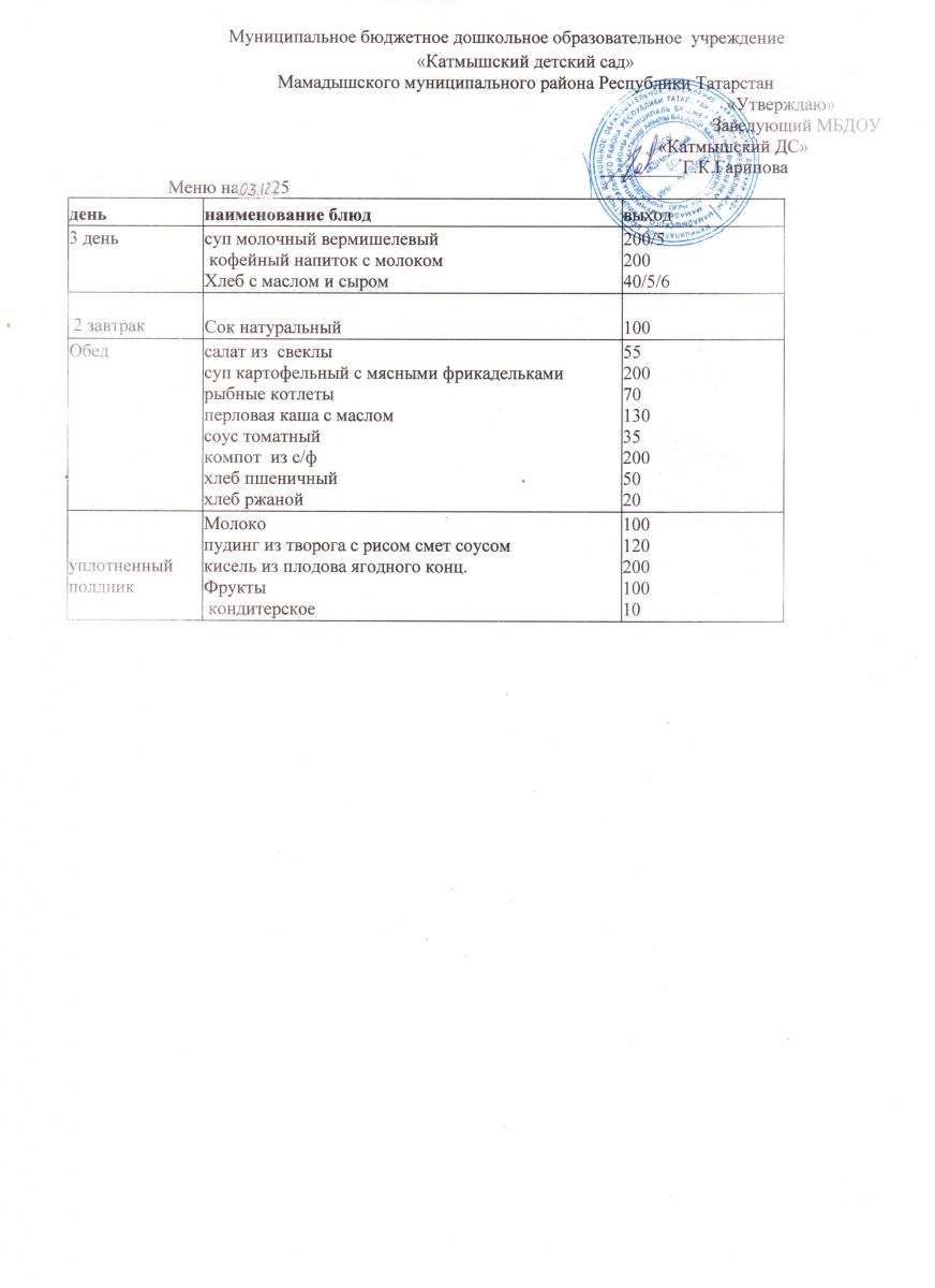 Муниципальное бюджетное дошкольное образовательное учреждение «Катмышский детский сад» Мамадышского муниципального района РТ