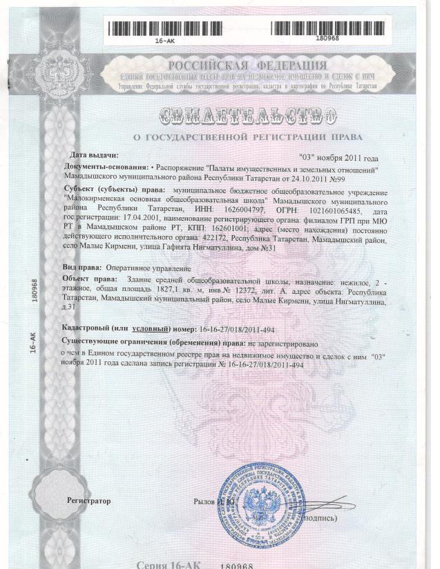 Адрес: 422172, Республика Татарстан, Мамадышский район, с. Малые Кирмени, ул. Г. Нигматуллина, д.31