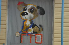 Мозаика из пластмассовых крышек. Классный руководитель 8 класса Хохлов С.Г. с учениками оформил двери спортивного зала мозаикой 01.12.2014
