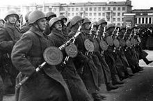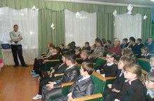Учитель истории Хохлова Л.Н. в актовом зале школы для учащихся провела урок мужества, посвященный Военному параду 7 ноября 1941 года 11.11.2014
