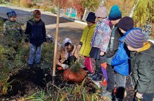 Ученики начальной школы помогли посадить кустарники вокруг школы.