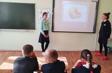 Представители школьного волонтерского отряда "Надежда" провели беседу с начальной школой на тему : "Кто такой волонтер?"