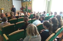 Сегодня в школе в актовом зале с учащимися 1-11 классов была проведена беседа с инспектором ПДН Тихомировой Натальей Павловной на тему : "Закон №71, профилактика экстремизма,ьерроризма, административная и уголовная ответственность, соблюдение правил дорожного движения".