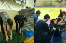 21 ноября наши учащеся сдавали нормы по Олимпиаде-100 в д.Н.Ошма по подниманию туловища из положения лежа на спине и по наклонам вперед из положения стоя.