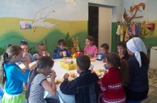 Счастливые и довольные ребята пошли на обед. Как всегда, было очень вкусно. После обеда прошли игры по интересам. В 2 часа ребята разошлись по домам.
