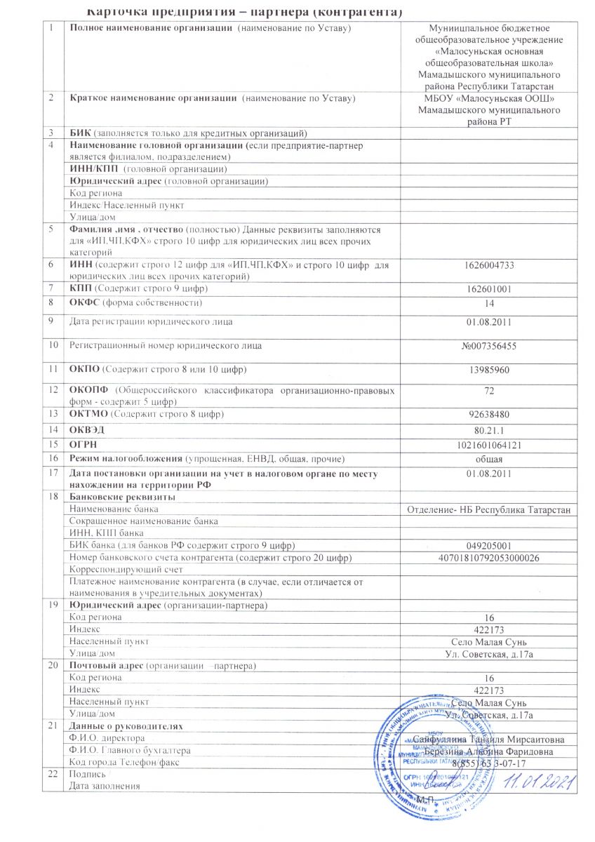 МБОУ «Малосуньская основная общеобразовательная школа» Мамадышского муниципального района РТ/Татарстан Республикасы Мамадыш муниципаль районы муниципаль бюджет гомуми белем учреждениесе «Кече Сон төп гомуми белем мәктәбе»