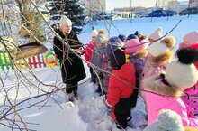 После снегопада начинается активная работа по уборке территории. Воспитанники охотно помогают в уборке снега на веранде и дорожках. Значение труда в природе для воспитания и развития детей велико: у детей формируются трудовые умения и навыки;