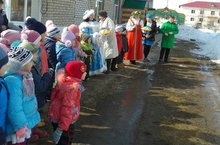 В нашем детском саду прошла масленица, дети прощались с Зимой и встречали Весну. Все ребята с нетерпением ждали этот праздник, готовились к нему, учили стихи, частушки и песни. Праздник начался с проводов зимы. Ушла Зима с песнями и заговорами, которые подготовили и исполнили ребятишки всех групп, и на смену ей пришла красивая и нарядная Весна. Она встретила детей загадками, играми и плясками, а скоморохи, которые были ведущими всего праздника, под звуки русской народной музыки устроили для ребят всех групп соревнования между собой и играли с ребятней в русские народные игры. В конце праздника состоялось сжигание соломенного чучела Зимы.