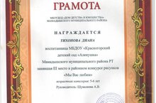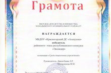 Награждается МБДОУ "Красногорский ДС "Аленушка" победитель районного этапа республиканского конкурса "Эколидер" номинация "Среди дошкольных учреждений". Руководитель: Давлетбаева Л.Р., Мугтасимова Ф.М..