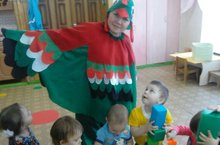 В группу раннего развития в гости приходил символ этого года - "Петушок - золотой гребешок". Вместе с ним дети учились различать большие и маленькие кубики.