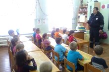 Сегодня в наш детский сад приходил инспектор ГИБДД и провел с детьми беседу о правилах дорожного движения. Ребята с удовольствием отвечали на его вопросы, активно участвовали в беседе. Также он подарил детям светоотражающие стикеры. Все остались довольны.