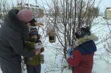Дети подготовительной группы сделали вместе с родителями кормушки. Во время прогулки воспитанники нашего детского сада повесили их на территории ДОУ. Дети в течение зимы будут наблюдать за птицами. ( Какие виды птиц прилетают, как ведут себя, какие кормы любят).