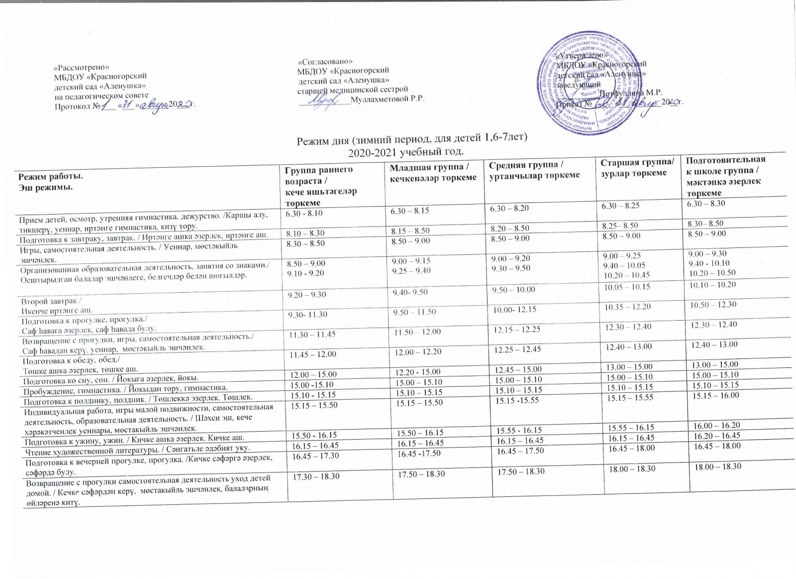 Режим дня (зимний период, для детей 1,6-7 лет)