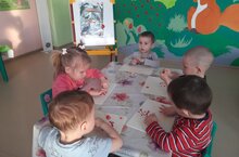 Әвәләү. Тема:"Кошлар өчен җимешләр". Максат: кызыл төсне таный һәм атый белергә өйрәнү; предметларның формалары турында белемнәрне ныгыту; кошлар белән танышуны дәвам итү; әвәләү шөгыленә кызыксынучанлык тәрбияләү.