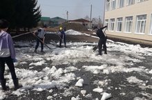Учащиеся 6-8 классов и педагоги все вместе вышли на уборку пришкольной территории. Была проведена большая работа по уборке мусора, сухой листвы. Ребята дружно взялись за работу и быстро навели порядок во дворе, на спортивной площадке.