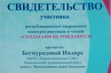 Бегмурадова Индира и Хасанова Ландыш награждены дипломами республиканского творческого конкурса рисунков и чтецов "Солдатами не рождаются"