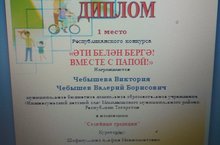 Республика күләмендә уздырылган "Әти белән бергәләп!" конкурсында бакчабыздан Әхмәтҗанова Рәйхан, Чебышева Виктория әтиләре белән I нче дәрәҗә Дипломнарга лаек булдылар.Афәрин, балалар!