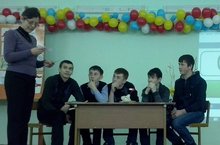 В рамках Недели химии была проведена интеллектуальная игра "Что? Где? Когда?" (учитель химии Иванова З.Г.). Учащиеся -зрители сами подготовили вопросы, "черный ящик". Команда знатоков сыграла против зрителей и победила со счётом 7:4.
