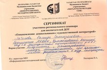 Участие воспитателя Латыповой Р.Г. в региональном семинаре для воспитателей ДОУ "Ознакомление дошкольников с художественной литературой". 25.11.2016