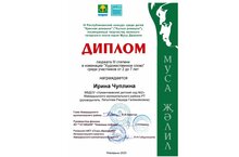 Участие во III Республиканском патриотическом конкурсе «Красная ромашка» среди детей дошкольного и школьного возраста . Чуплина Ирина лауреат III степени в номинации "Художественное слово" среди участников от 2 до 7 лет. 28.02.2025