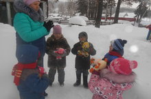 Подготовка к Новому Году . Оформление участка: снежными постройками и самодельными игрушками. 26.12.2015