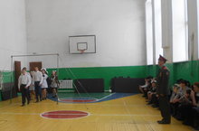 Сегодня в школе провели военно-спортивный конкурс "А ну-ка, парни!" В программе конкурса разборка и сборка автомата, одевание противогаза, подтягивание на перекладине, стрельба по мишени.