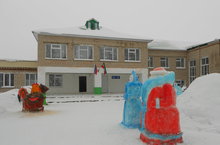 В школе построили городок из снежных фигур.