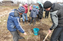 Сегодня ученики нашей школы приняли участие в посадке деревьев и кустарников. Решено было разбить парк возле памятника неизвестному солдату. Было высажено более двадцати саженцев вишни, сирени и других деревьев и кустарников. Посадка парка будет продолжена.