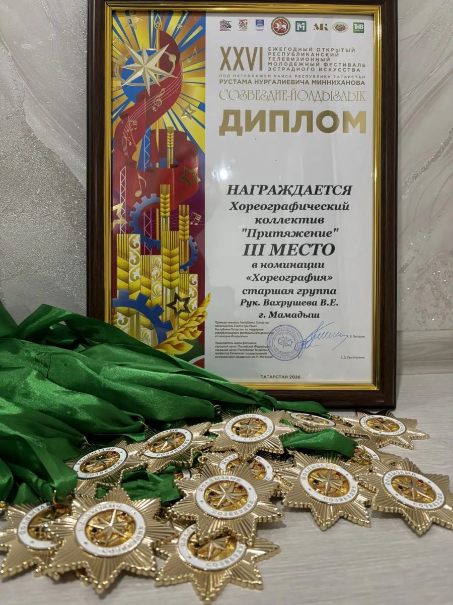 На гала-концерте открытого республиканского телевизионного молодежного фестиваля эстрадного искусства "Созведие - Йолдызлык" хореографический коллектив "Притяжение" занял III почетное место в номинации "Хореография. Старшая группа".