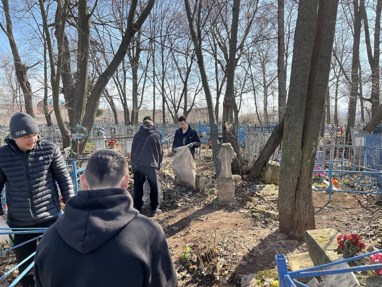 Сегодня студенты Мамадышского политехнического колледжа приняли активное участие в благоустройстве территории храма преподобной Ксении Римляныни и прилегающего кладбища.
