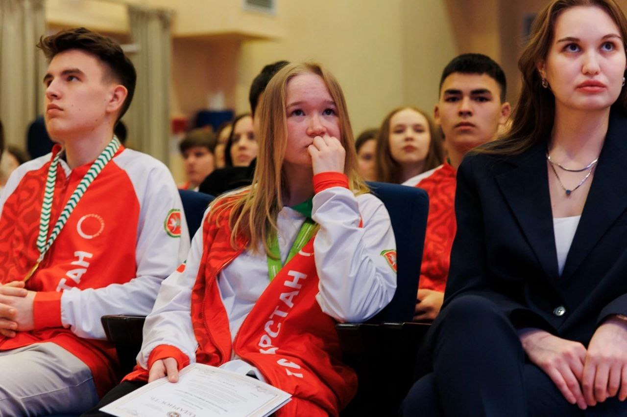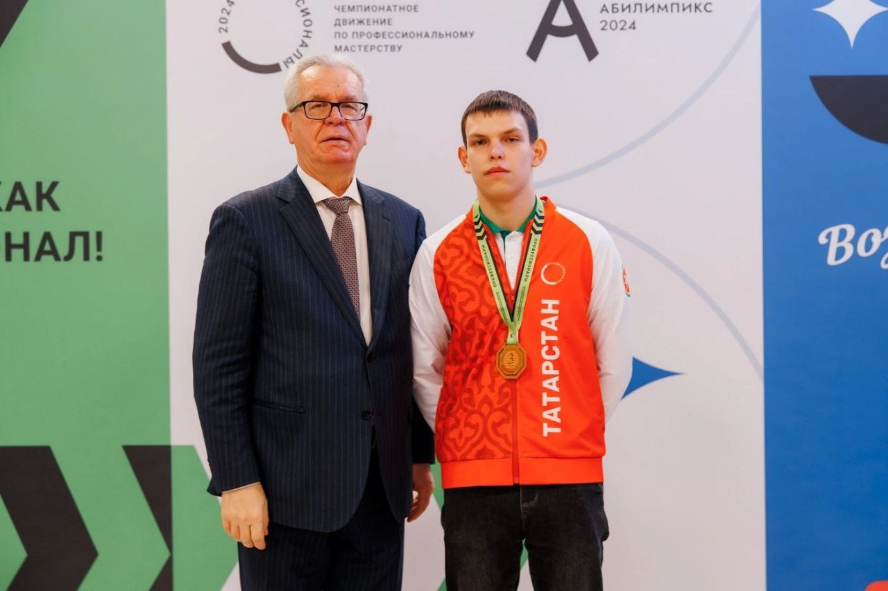 Раис Татарстана Рустам Минниханов встретился с победителями, призерами и наставниками чемпионатов «Профессионалы» и «Абилимпикс» 2024 года в многопрофильном лицее №187.