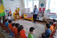 Сегодня в нашем детском саду прошла встреча детей с ведущим специалистом отдела правовой работы Идиатовой Дилярой Раифовной.Она рассказала детям о безопасносном поведений на дорогах.