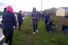 А также собрали мусор на прилегающей к ДОУ территории .