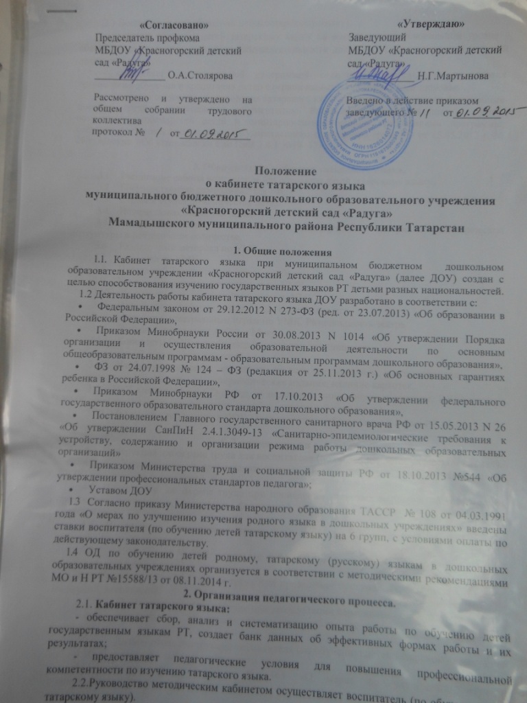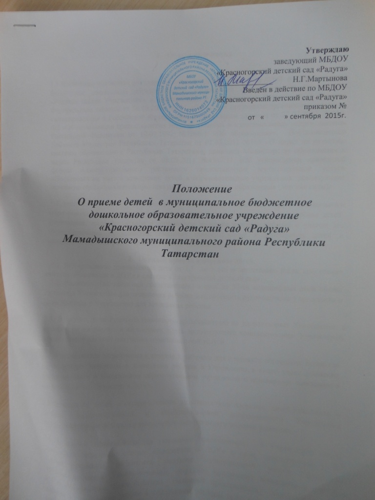 Муниципальное бюджетное дошкольное образовательное учреждение комбинированного вида «Красногорский детский сад «Радуга» Мамадышского муниципального района РТ
