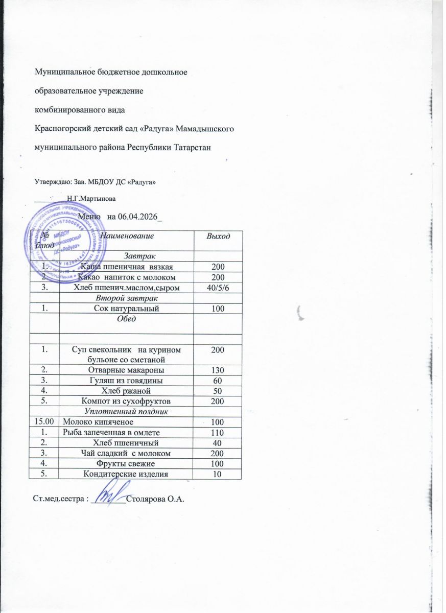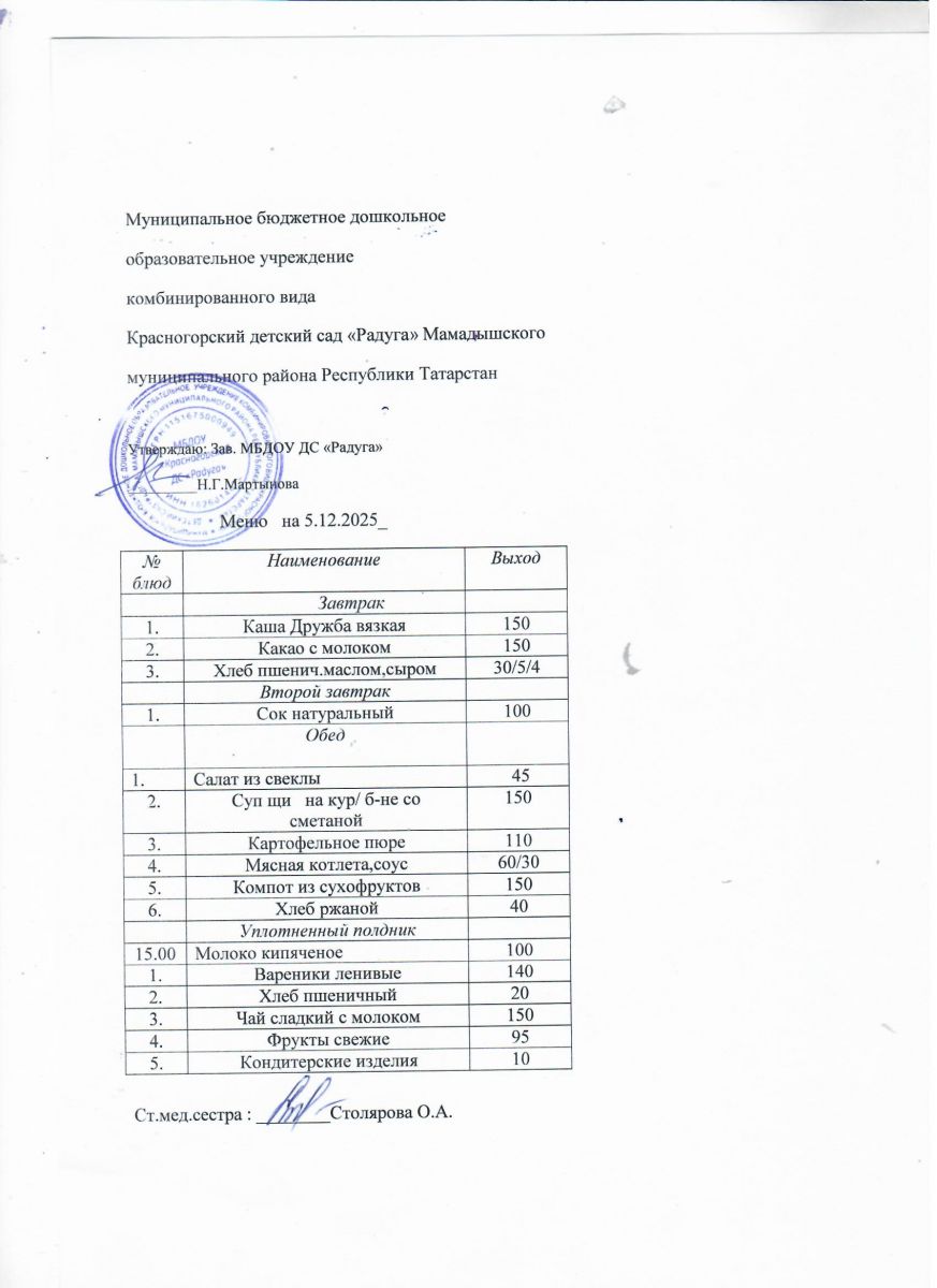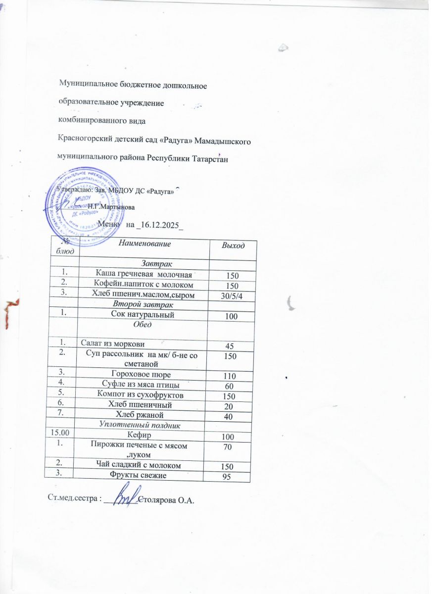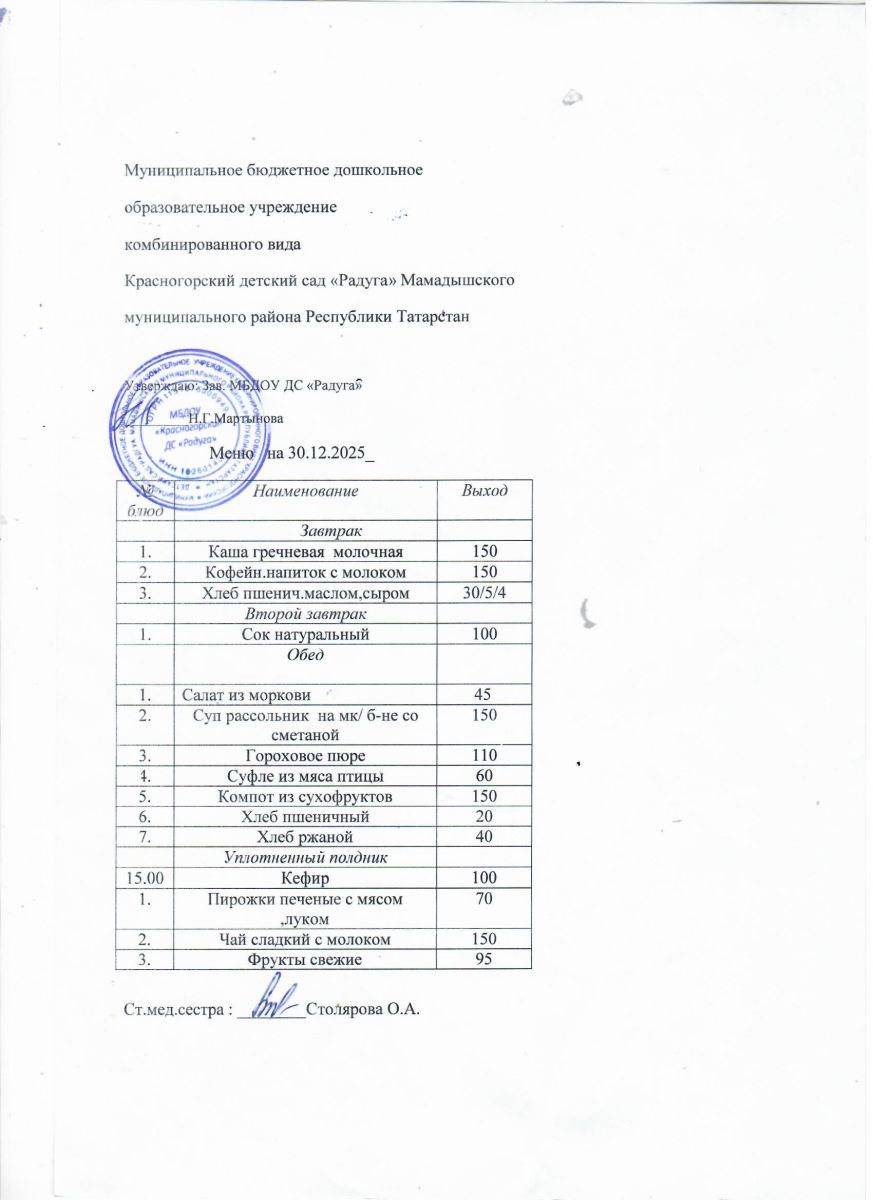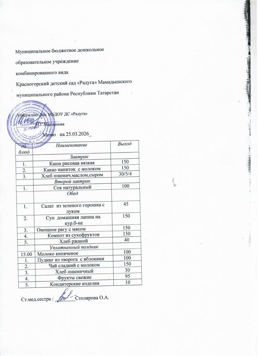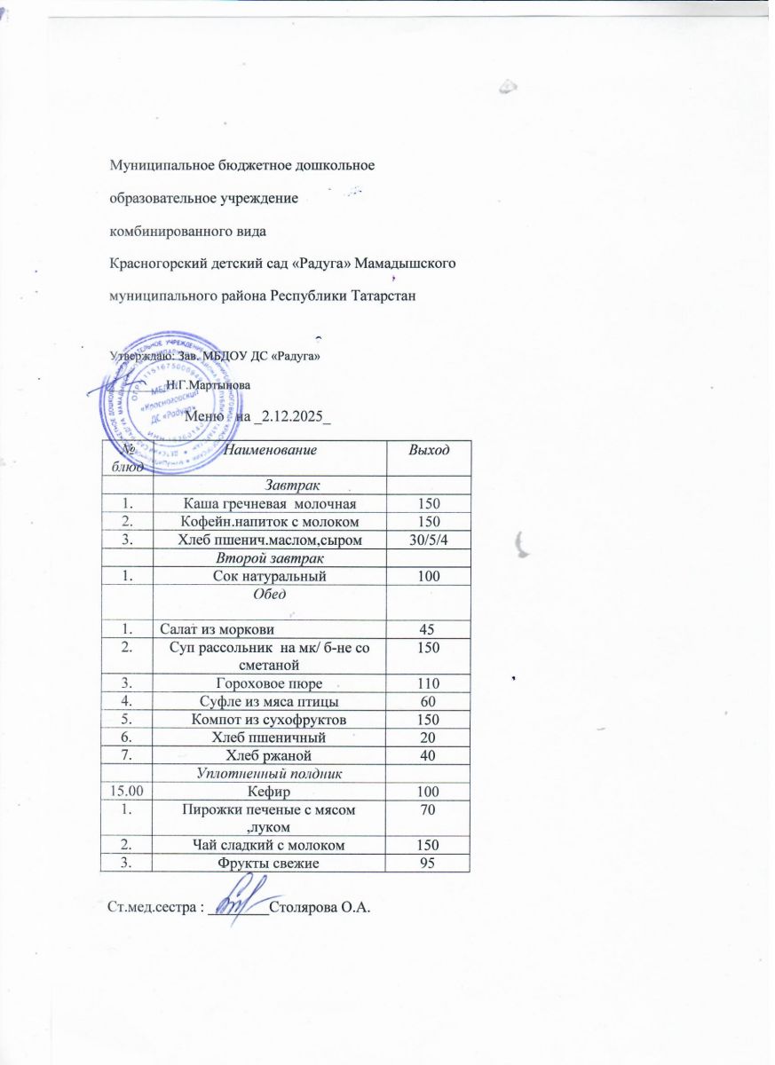 Муниципальное бюджетное дошкольное образовательное учреждение комбинированного вида «Красногорский детский сад «Радуга» Мамадышского муниципального района РТ