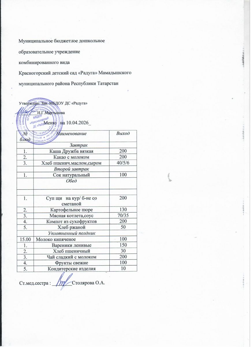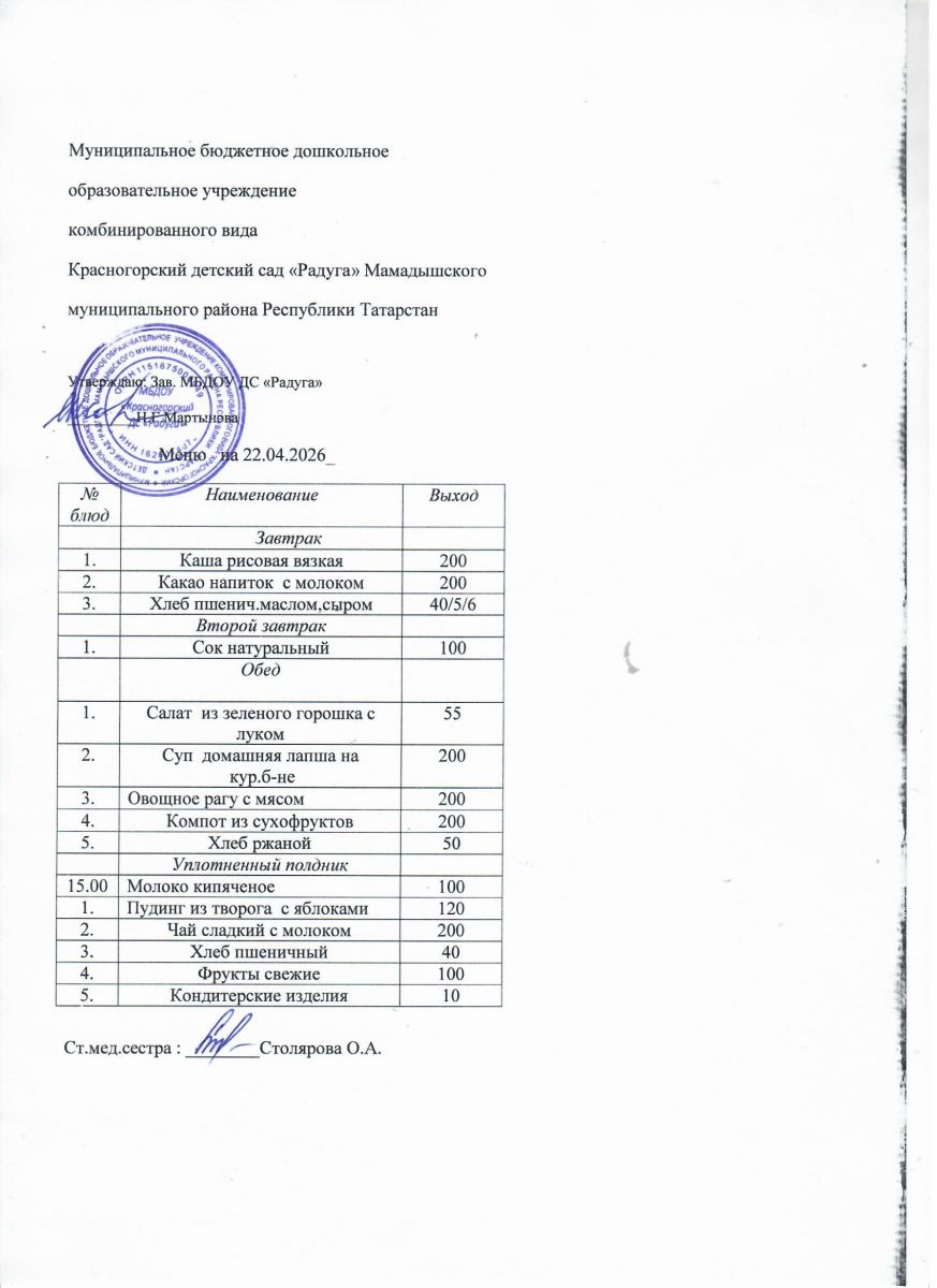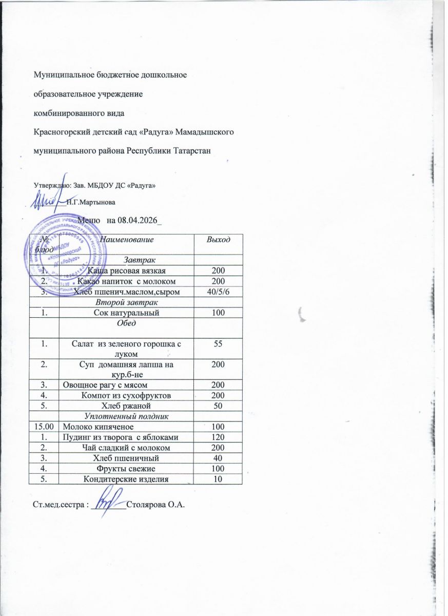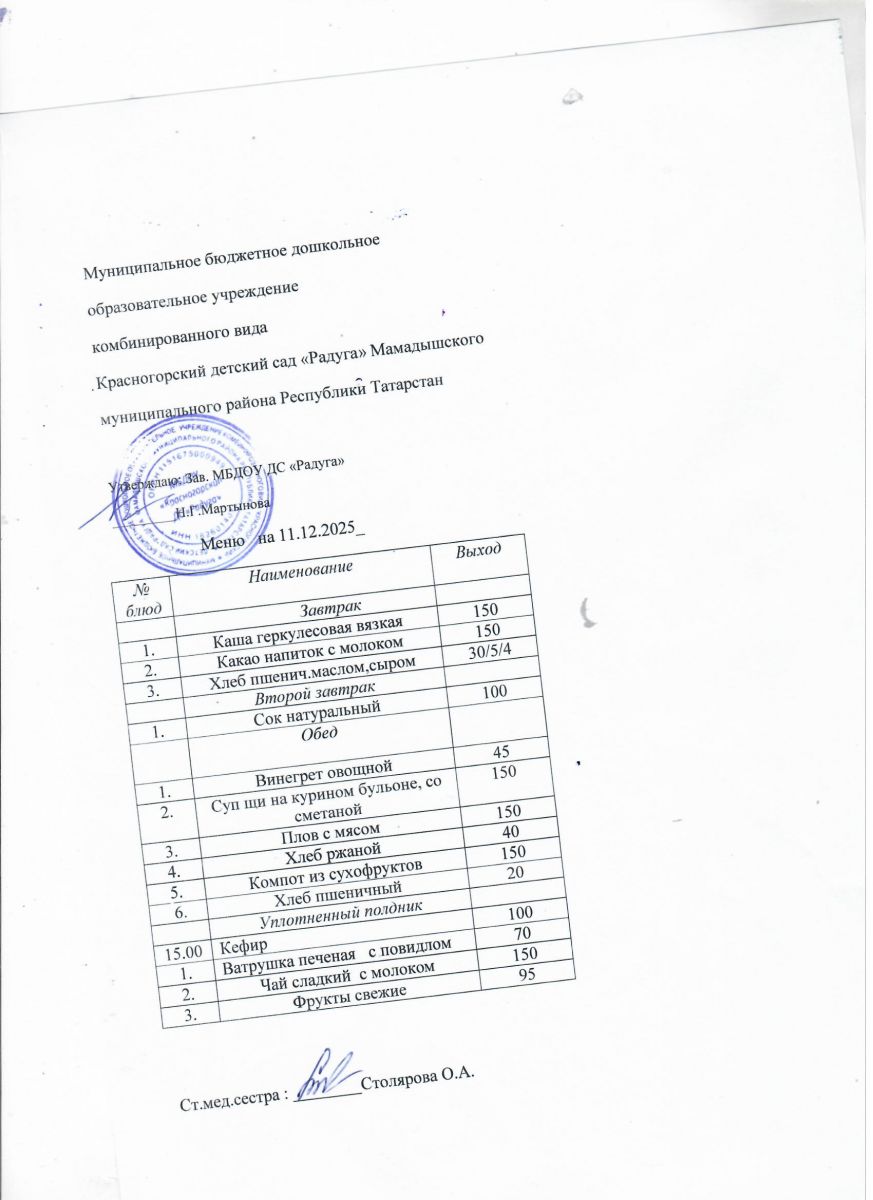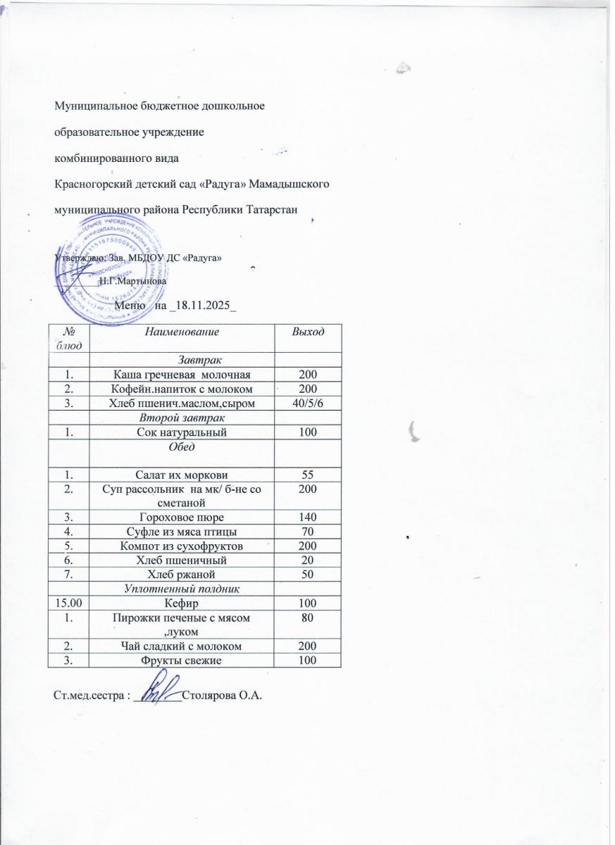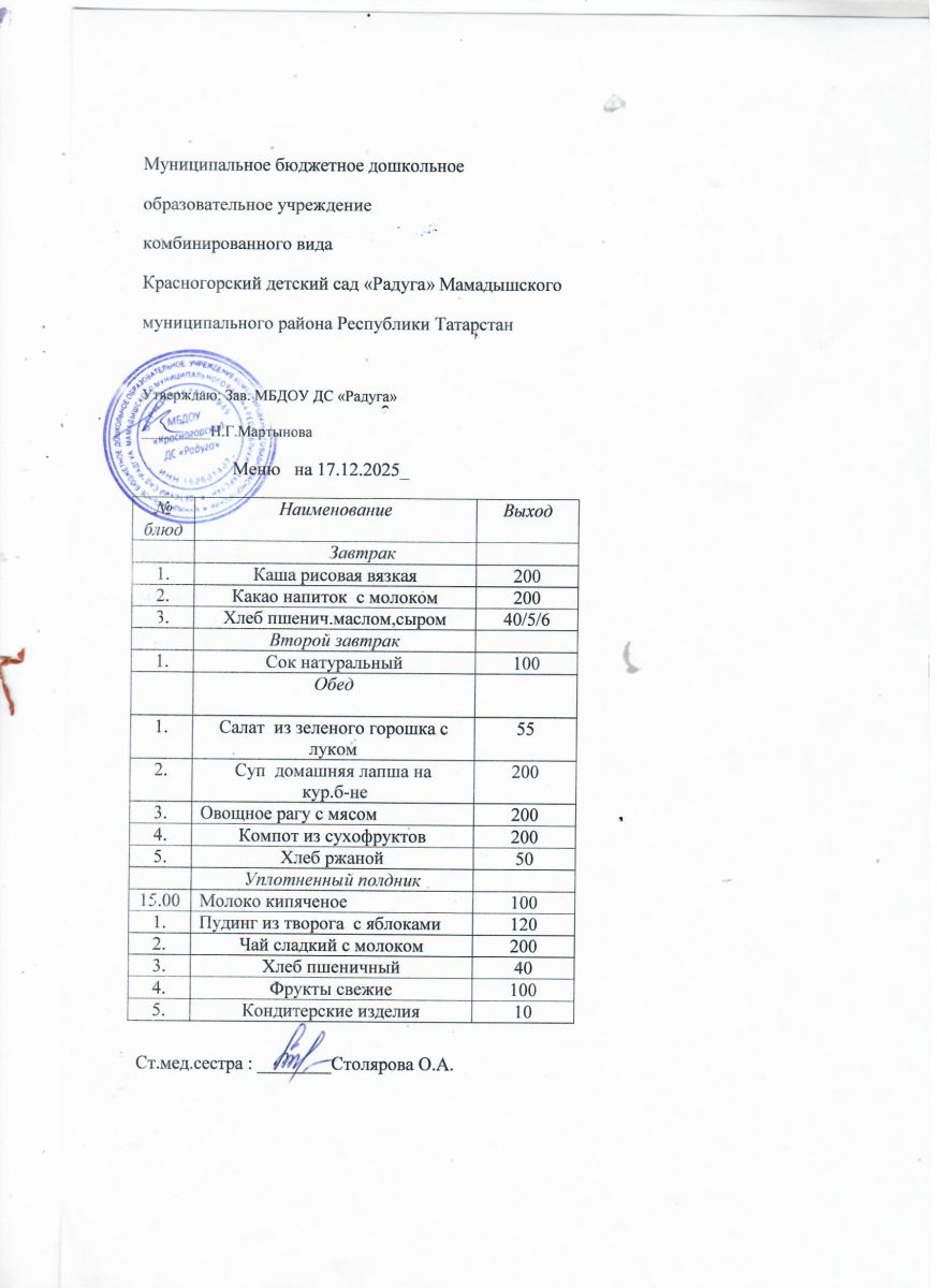 Муниципальное бюджетное дошкольное образовательное учреждение комбинированного вида «Красногорский детский сад «Радуга» Мамадышского муниципального района РТ