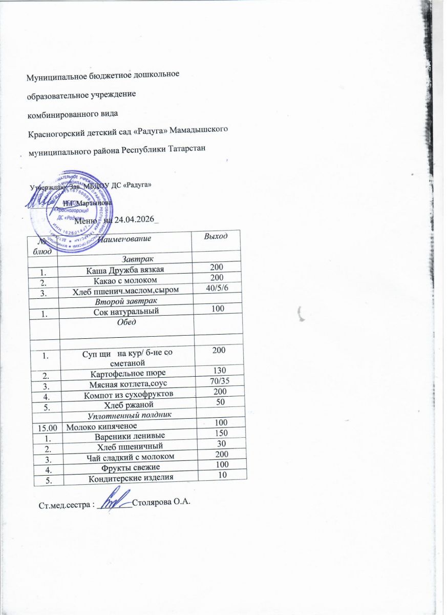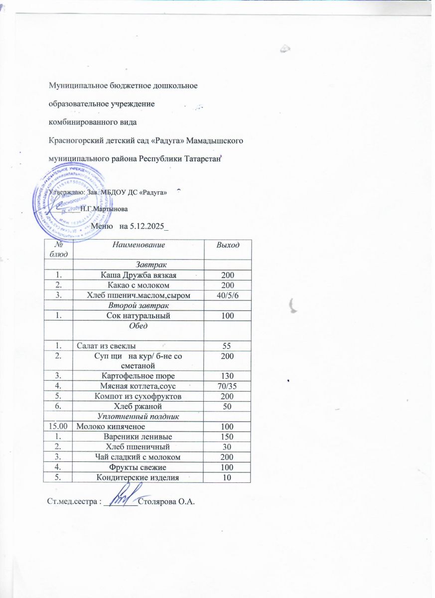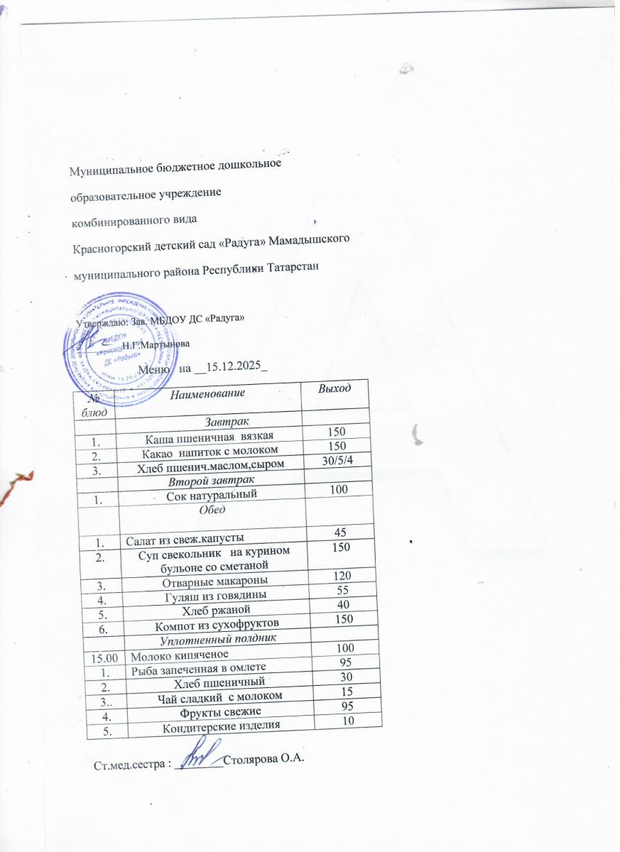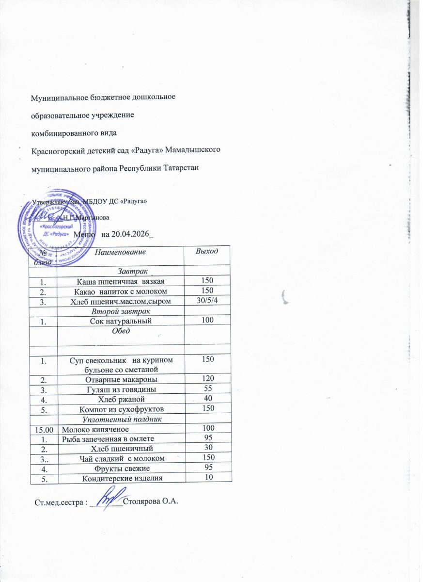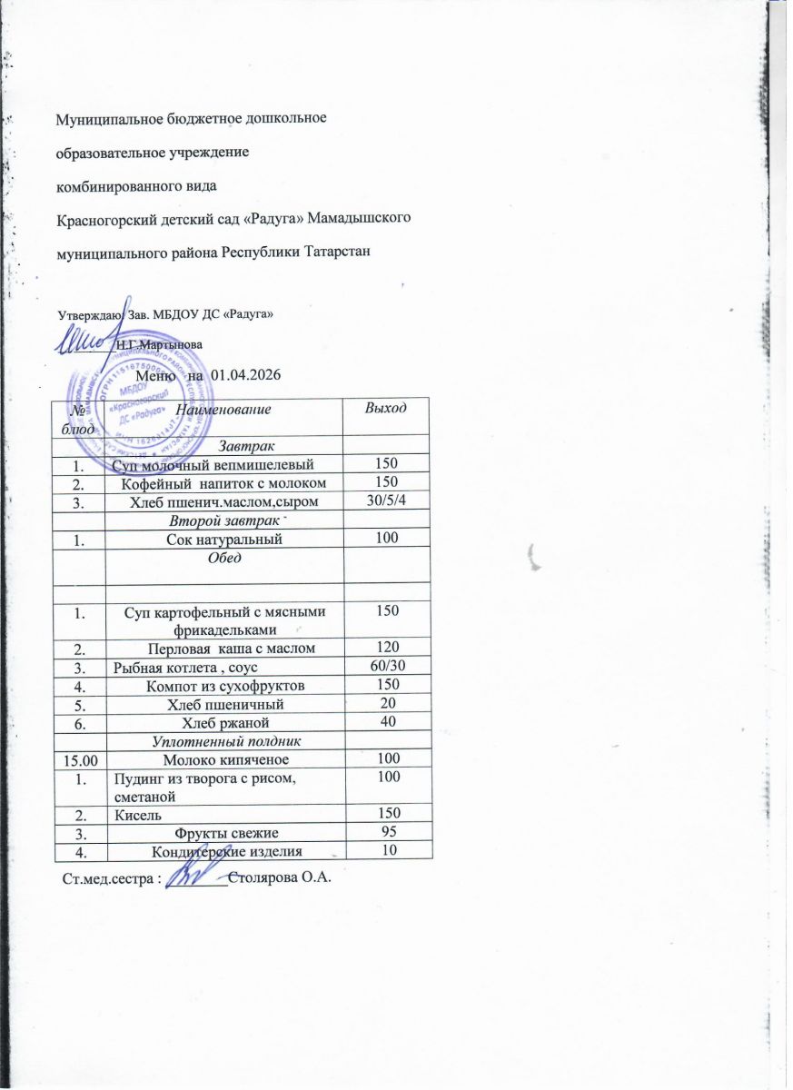Муниципальное бюджетное дошкольное образовательное учреждение комбинированного вида «Красногорский детский сад «Радуга» Мамадышского муниципального района РТ