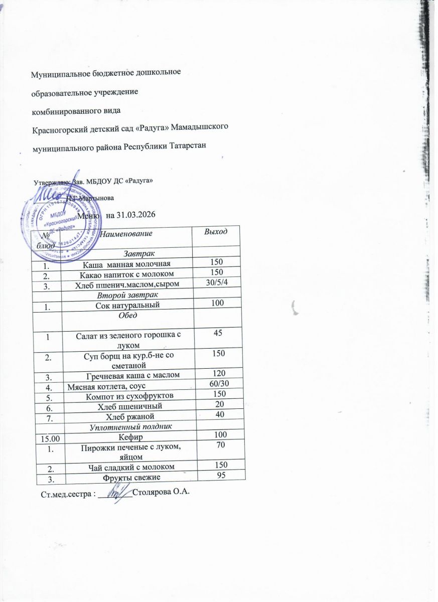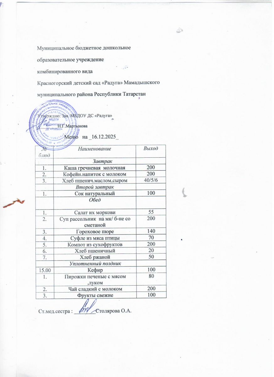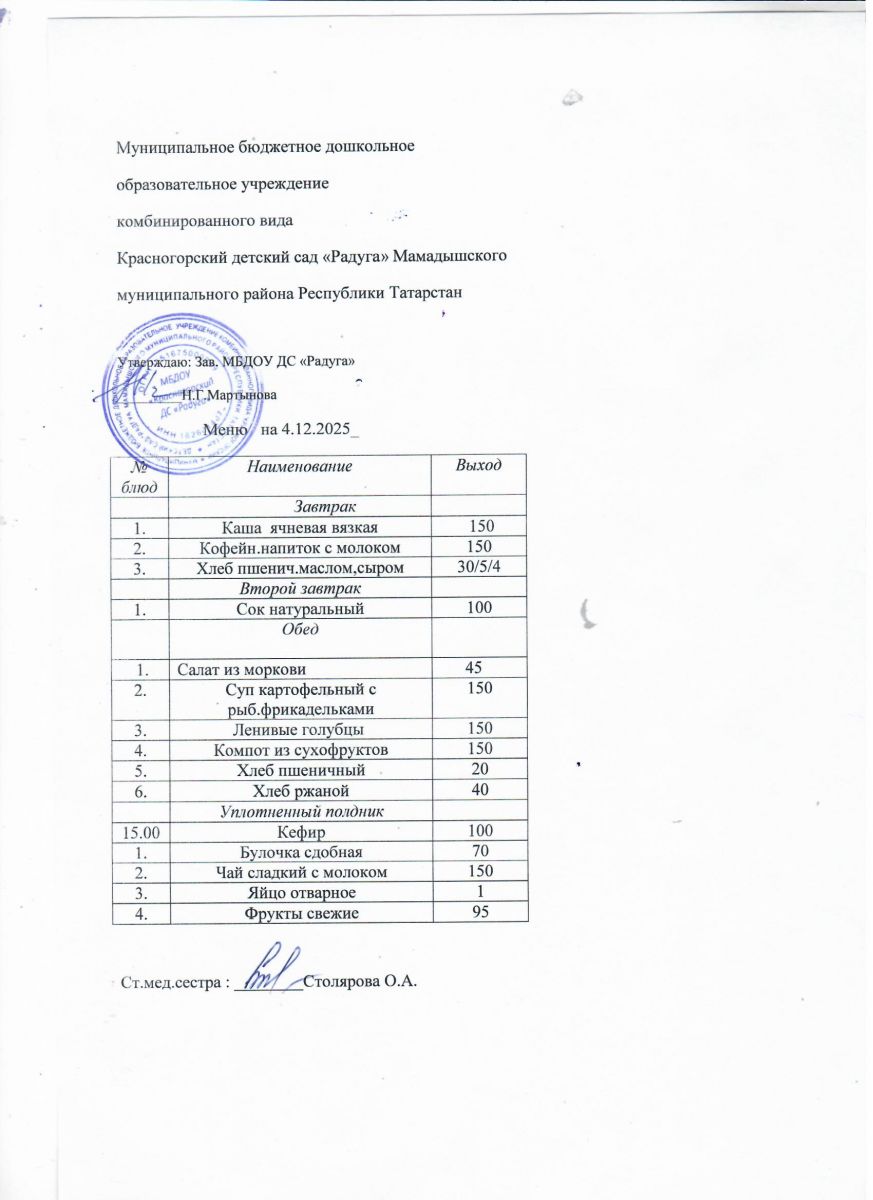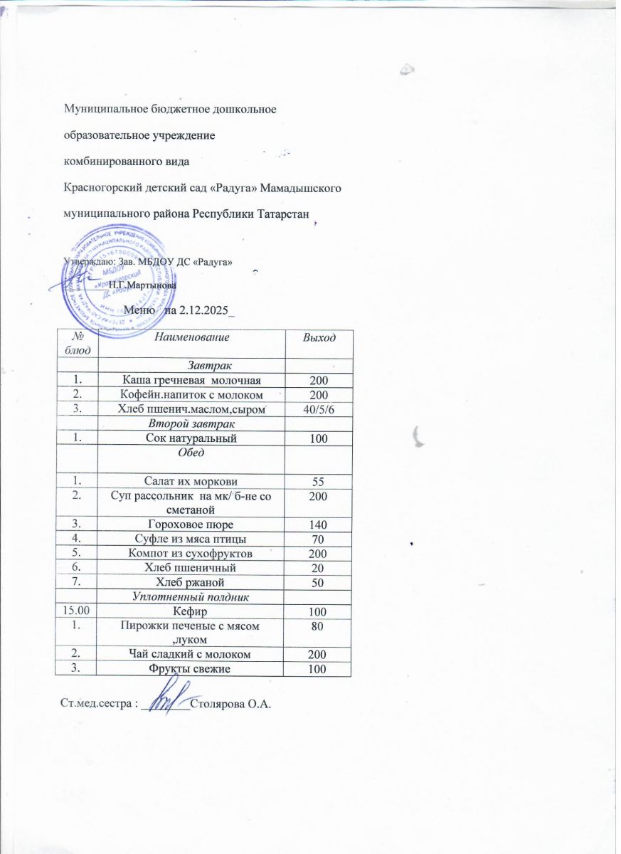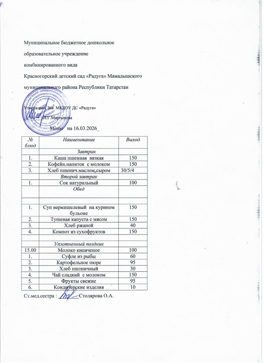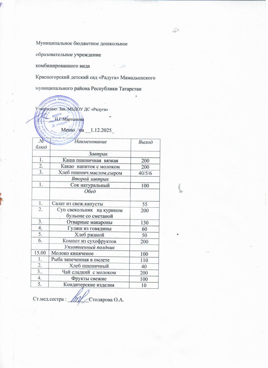 Муниципальное бюджетное дошкольное образовательное учреждение комбинированного вида «Красногорский детский сад «Радуга» Мамадышского муниципального района РТ