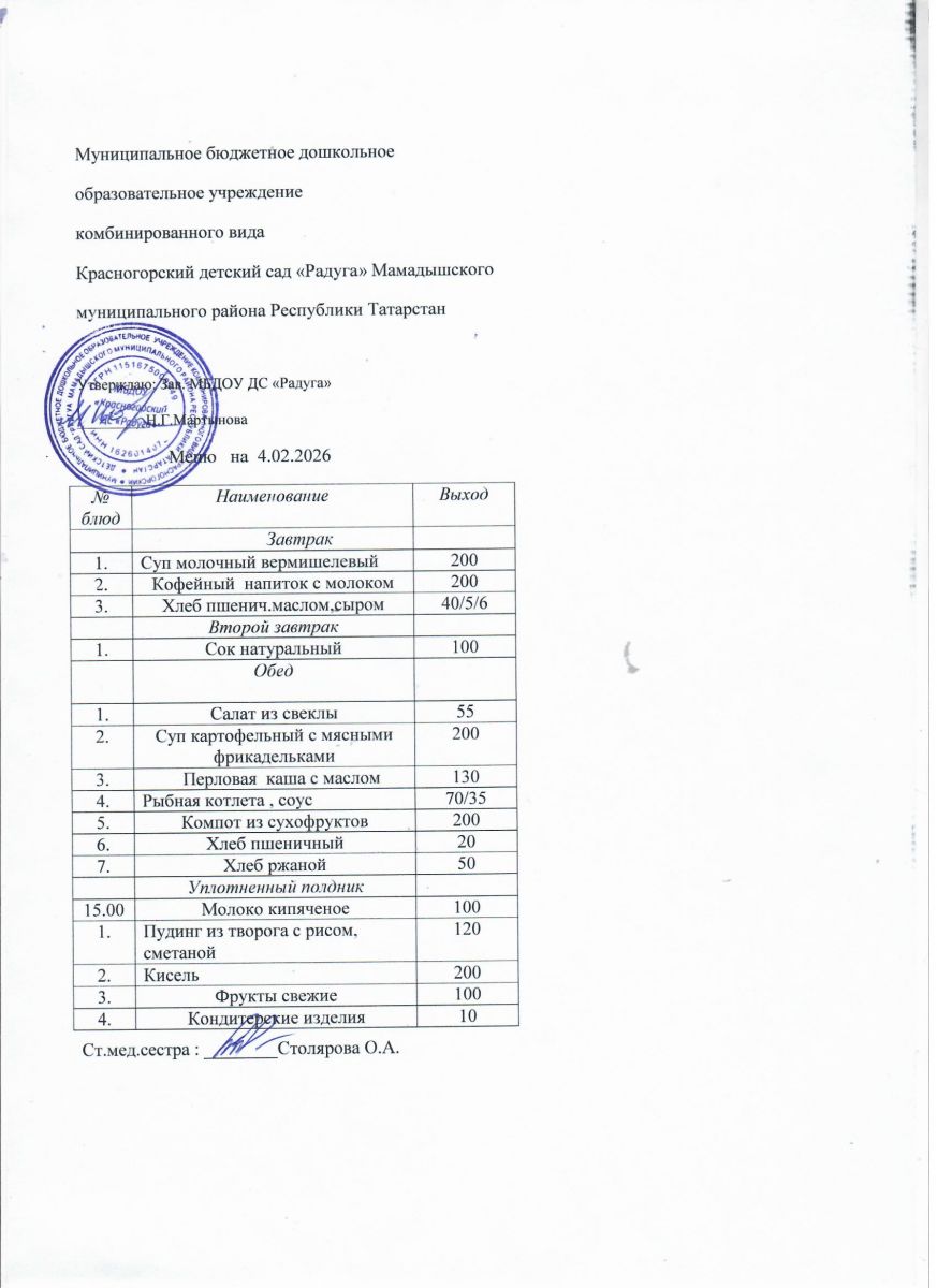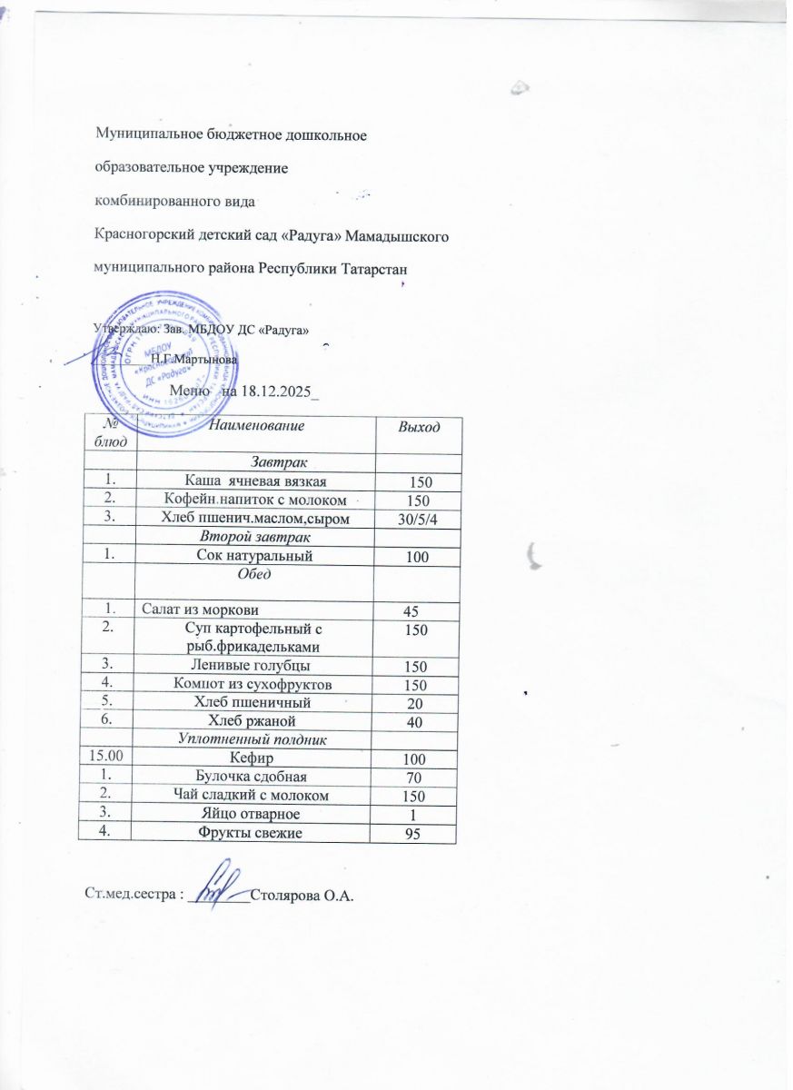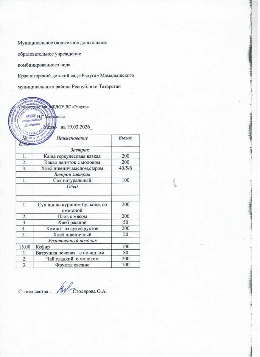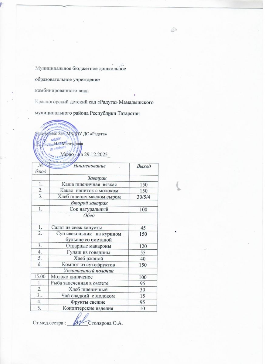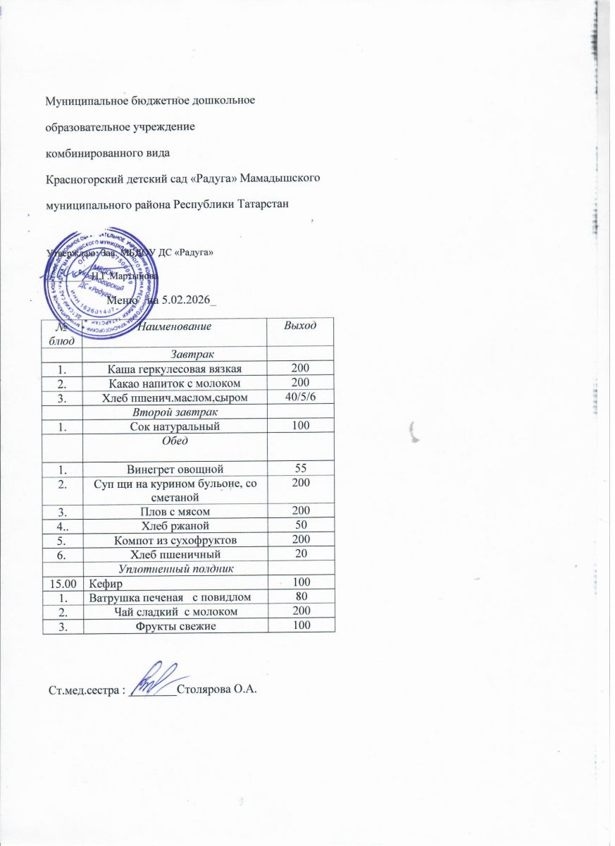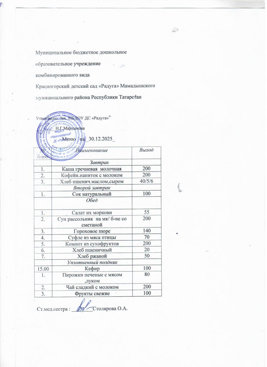 Муниципальное бюджетное дошкольное образовательное учреждение комбинированного вида «Красногорский детский сад «Радуга» Мамадышского муниципального района РТ