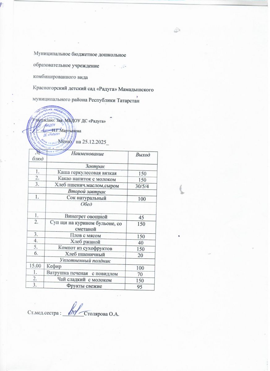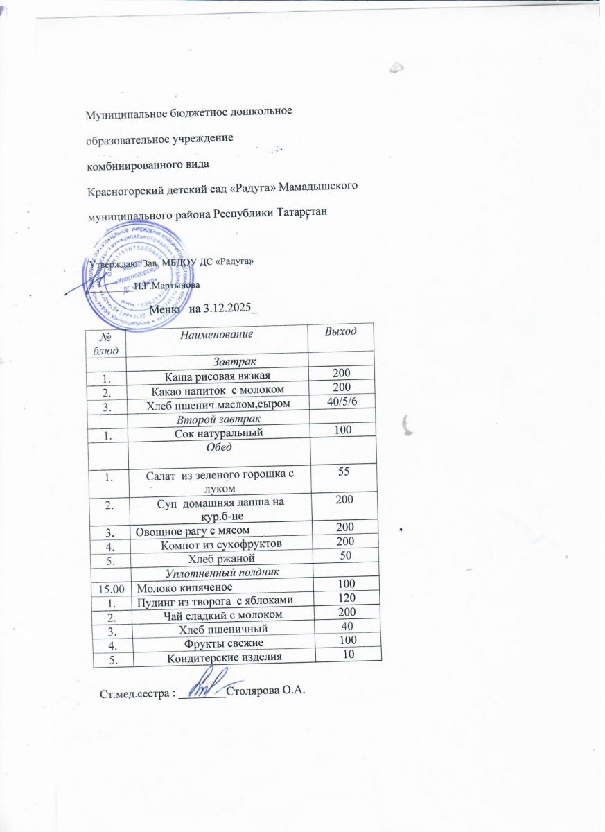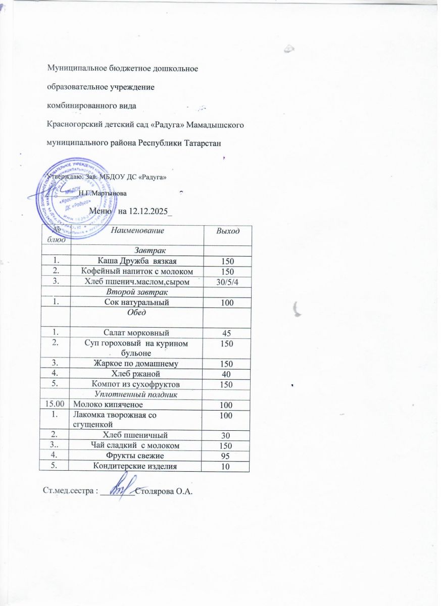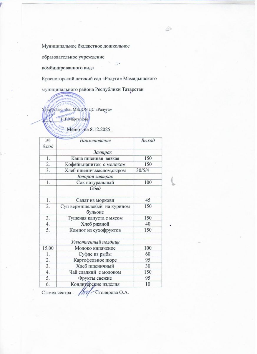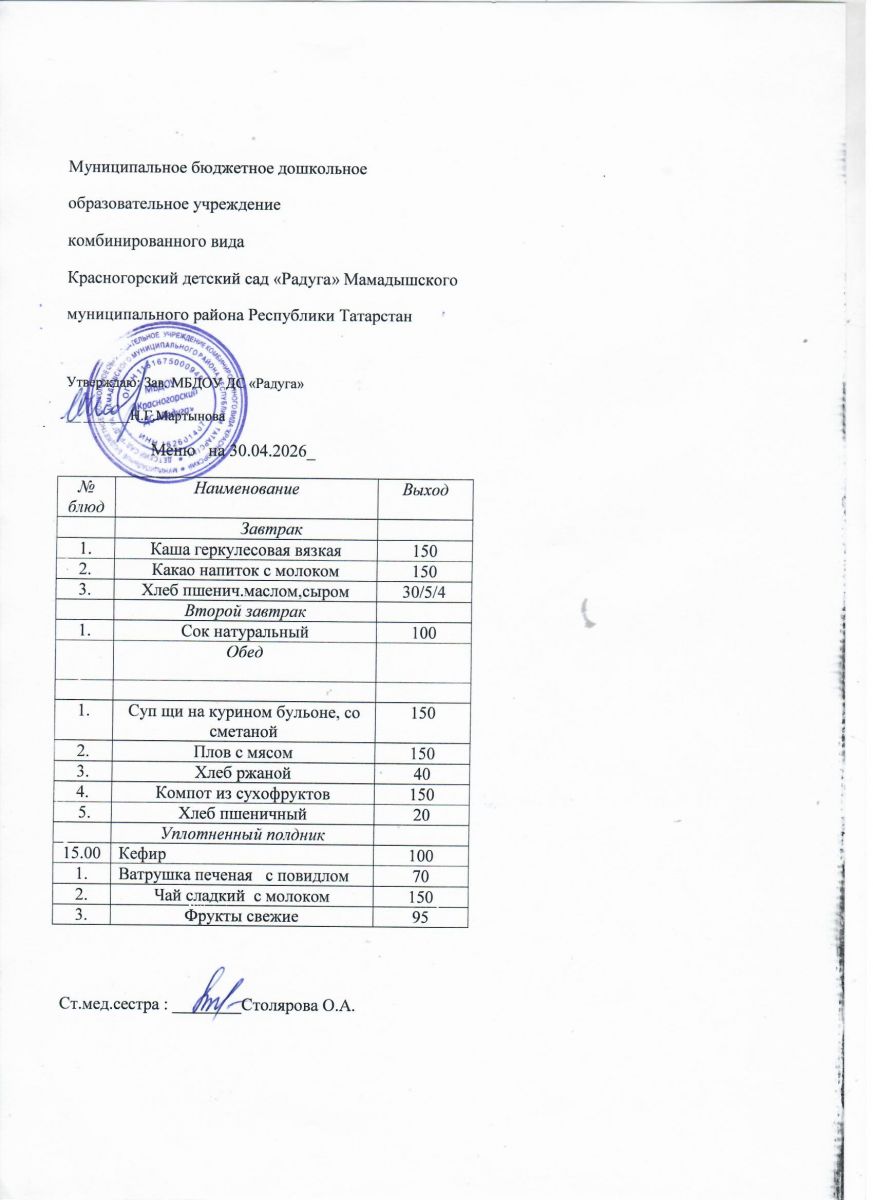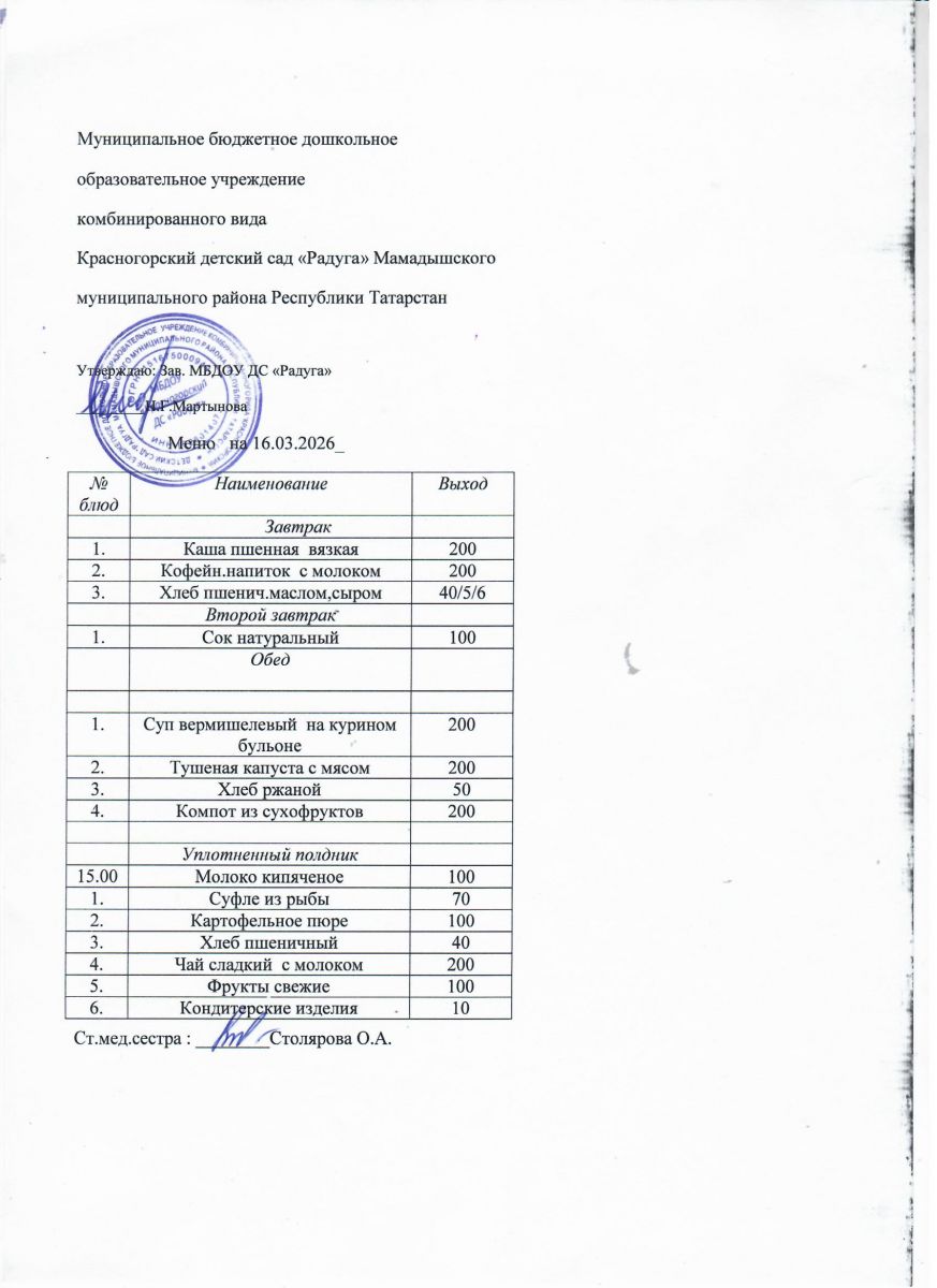 Муниципальное бюджетное дошкольное образовательное учреждение комбинированного вида «Красногорский детский сад «Радуга» Мамадышского муниципального района РТ