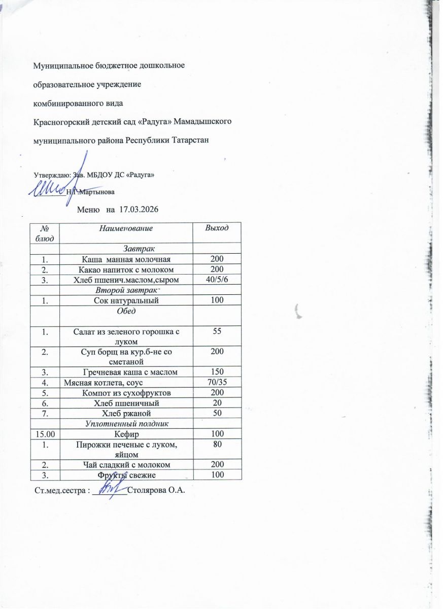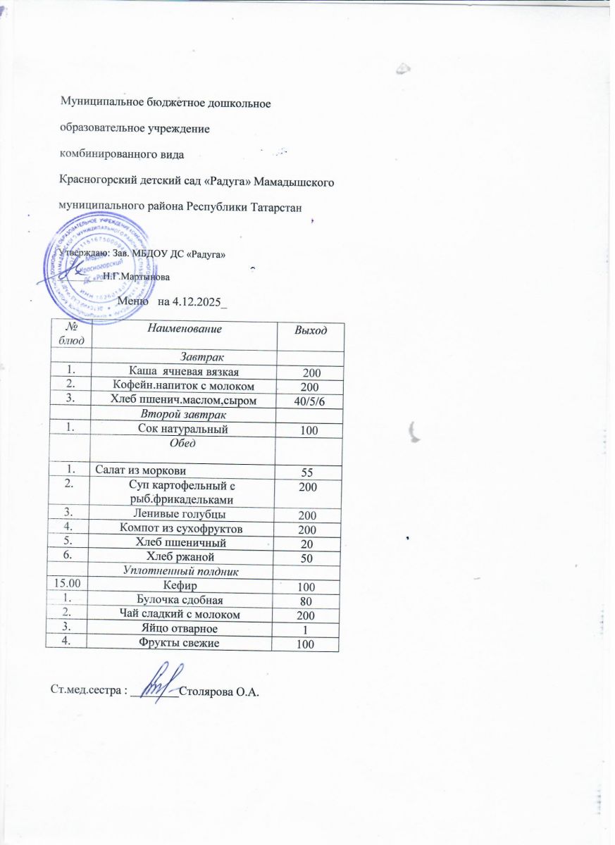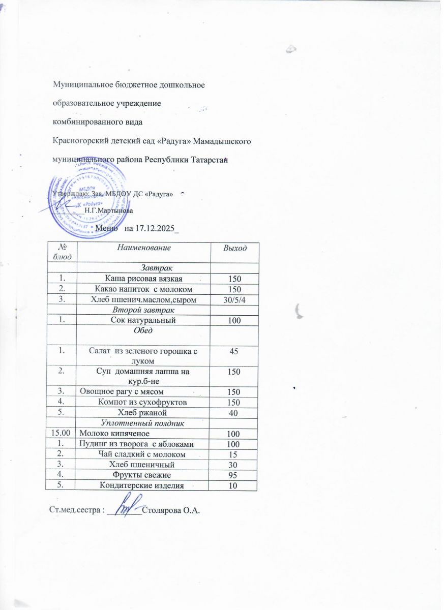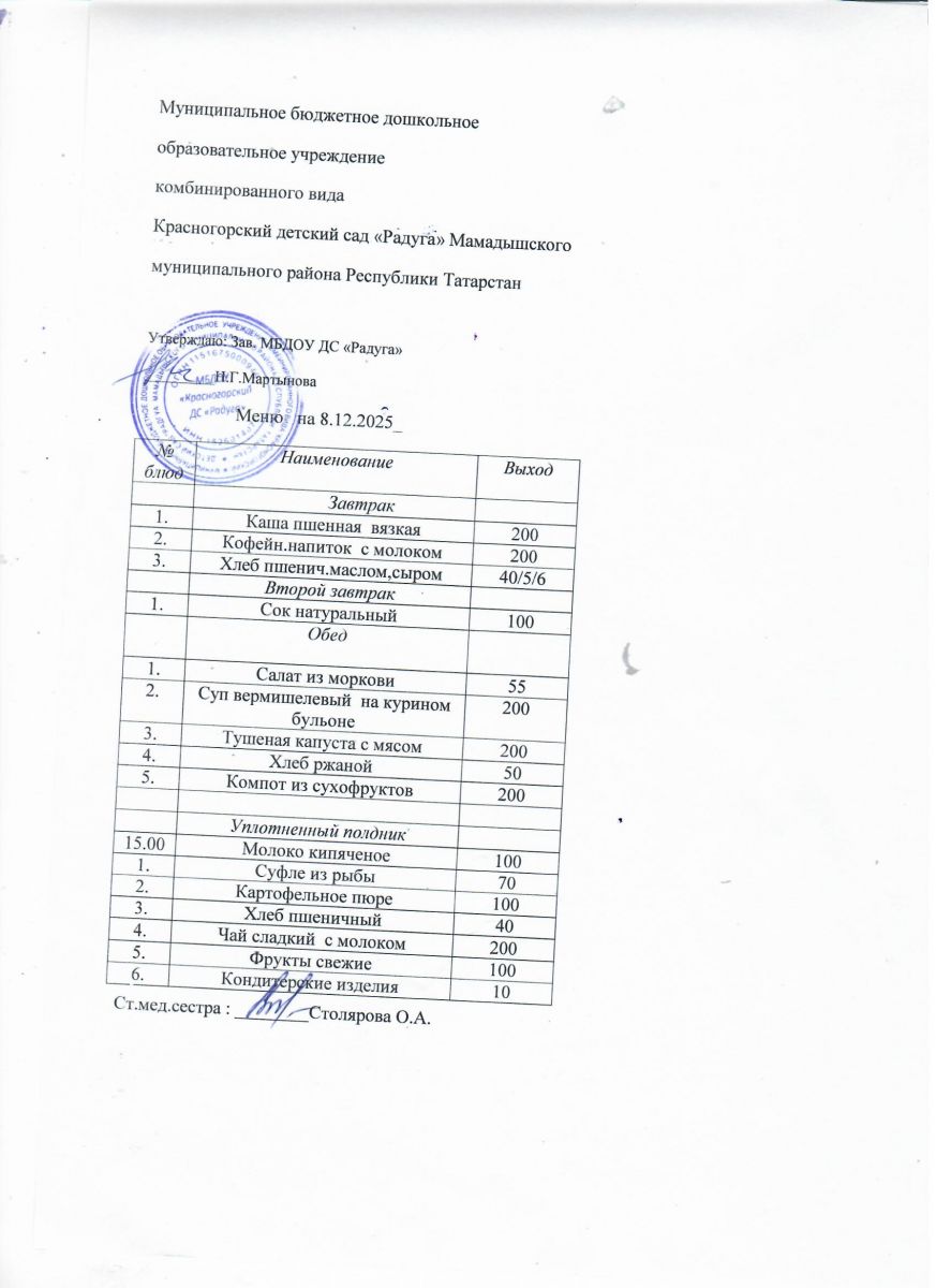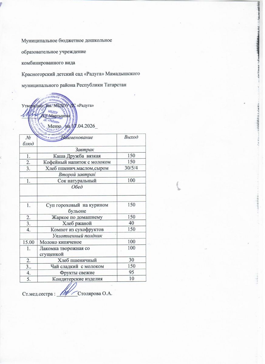 Муниципальное бюджетное дошкольное образовательное учреждение комбинированного вида «Красногорский детский сад «Радуга» Мамадышского муниципального района РТ