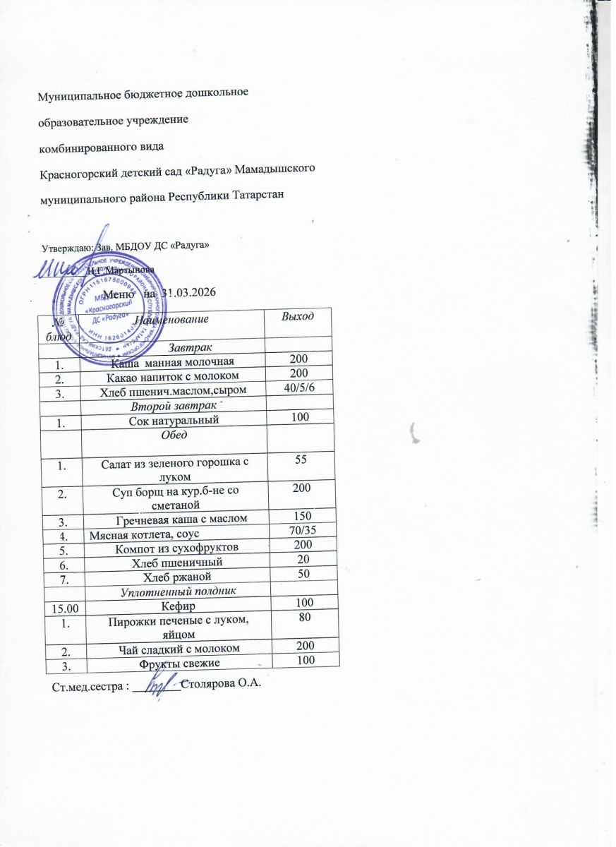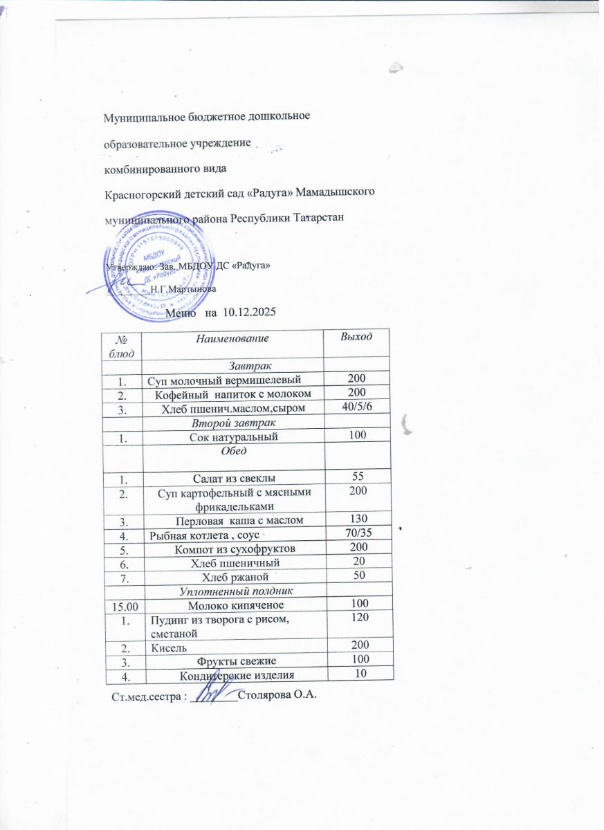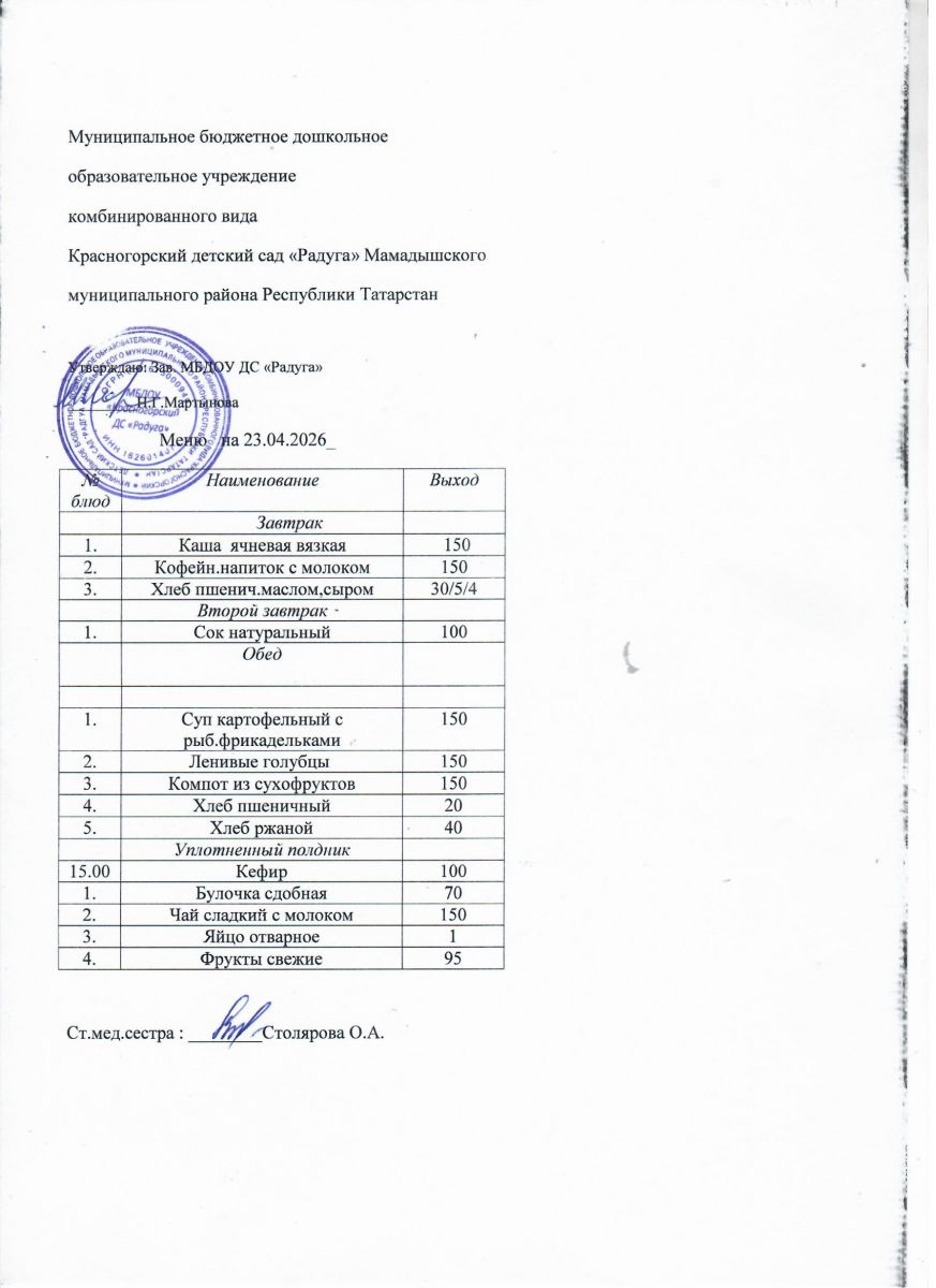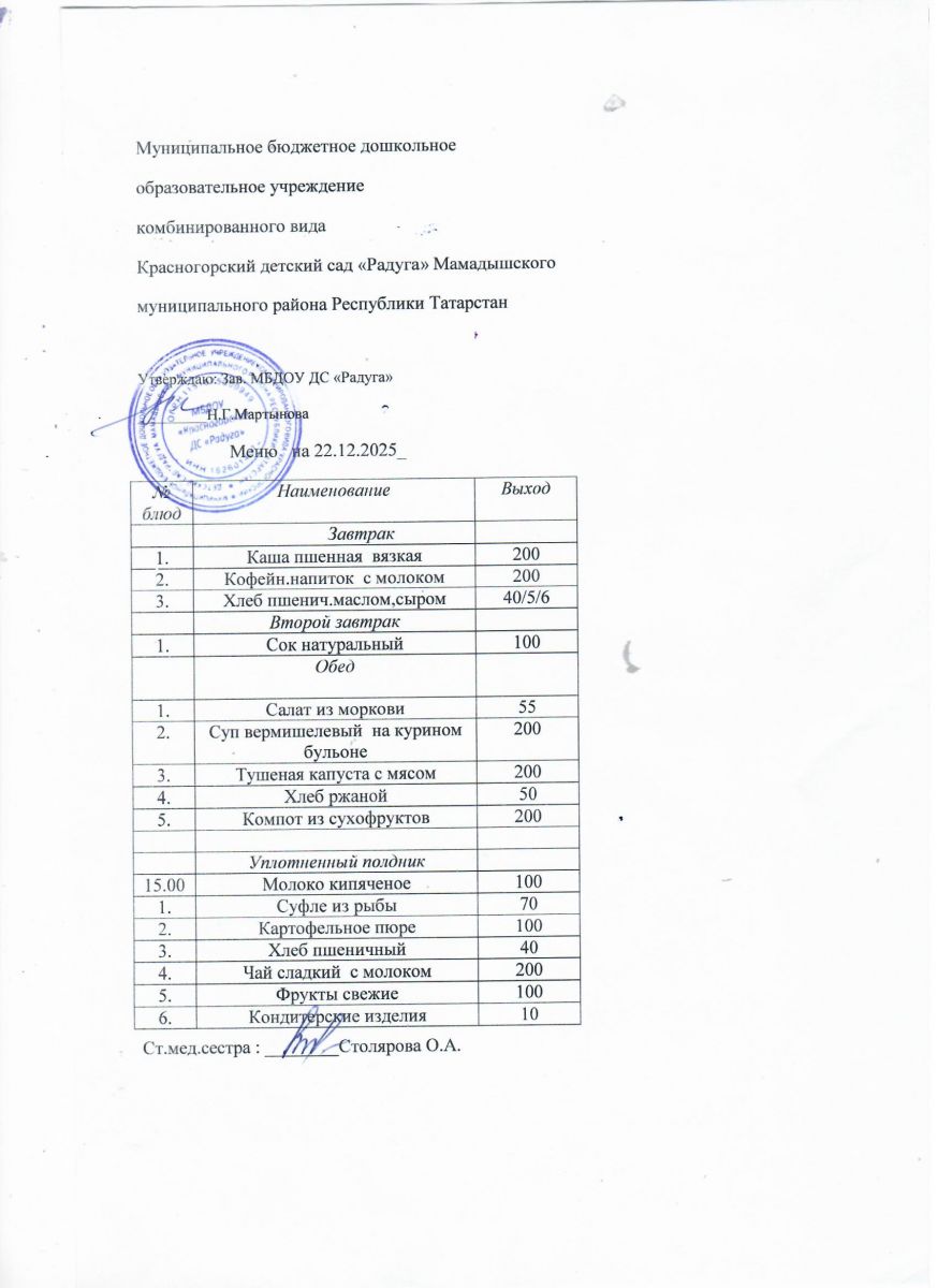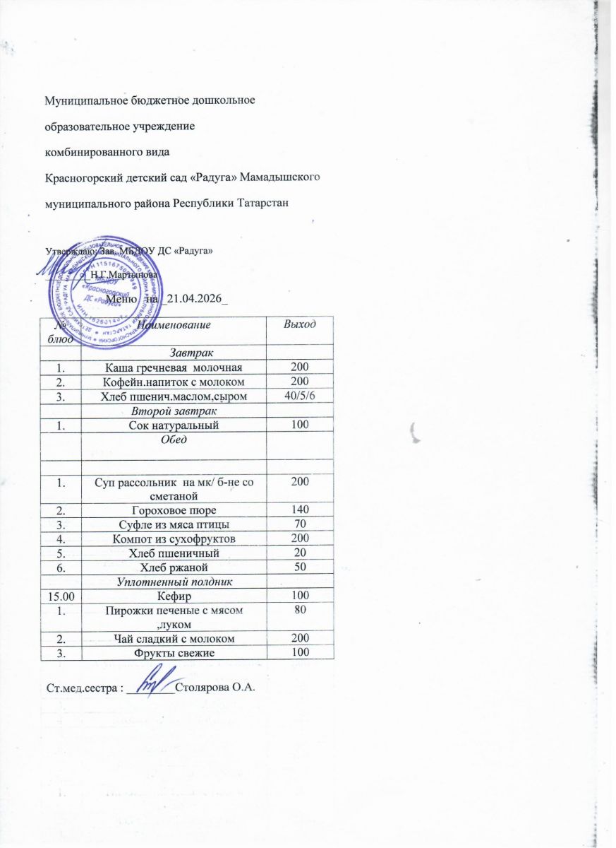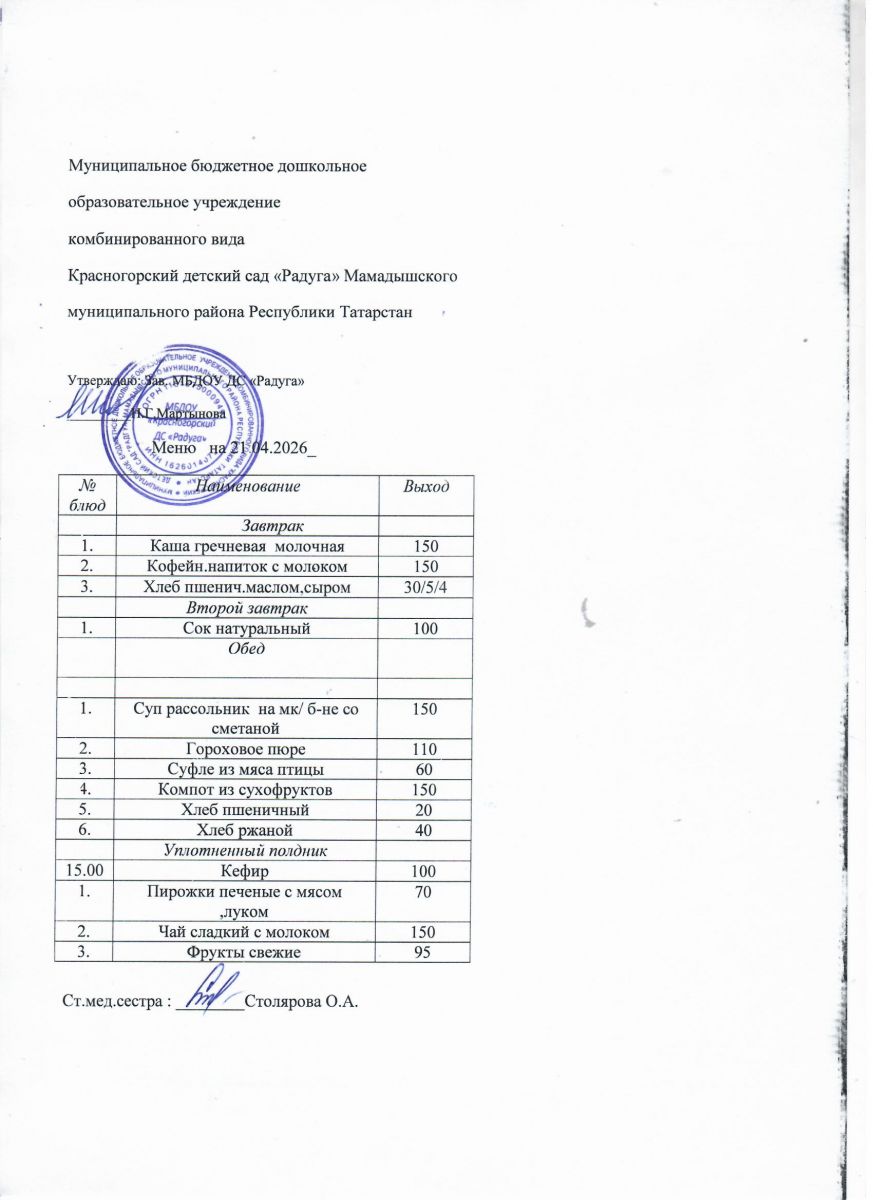 Муниципальное бюджетное дошкольное образовательное учреждение комбинированного вида «Красногорский детский сад «Радуга» Мамадышского муниципального района РТ