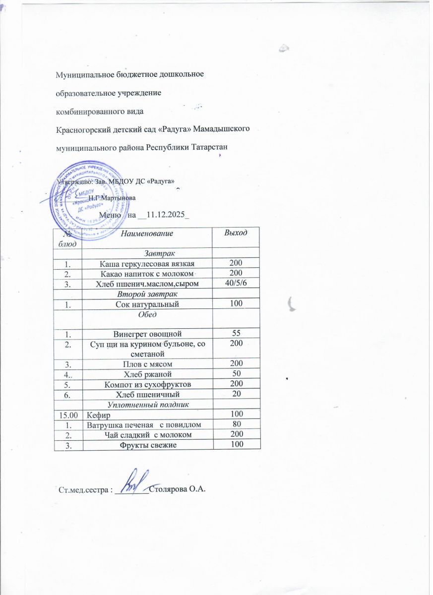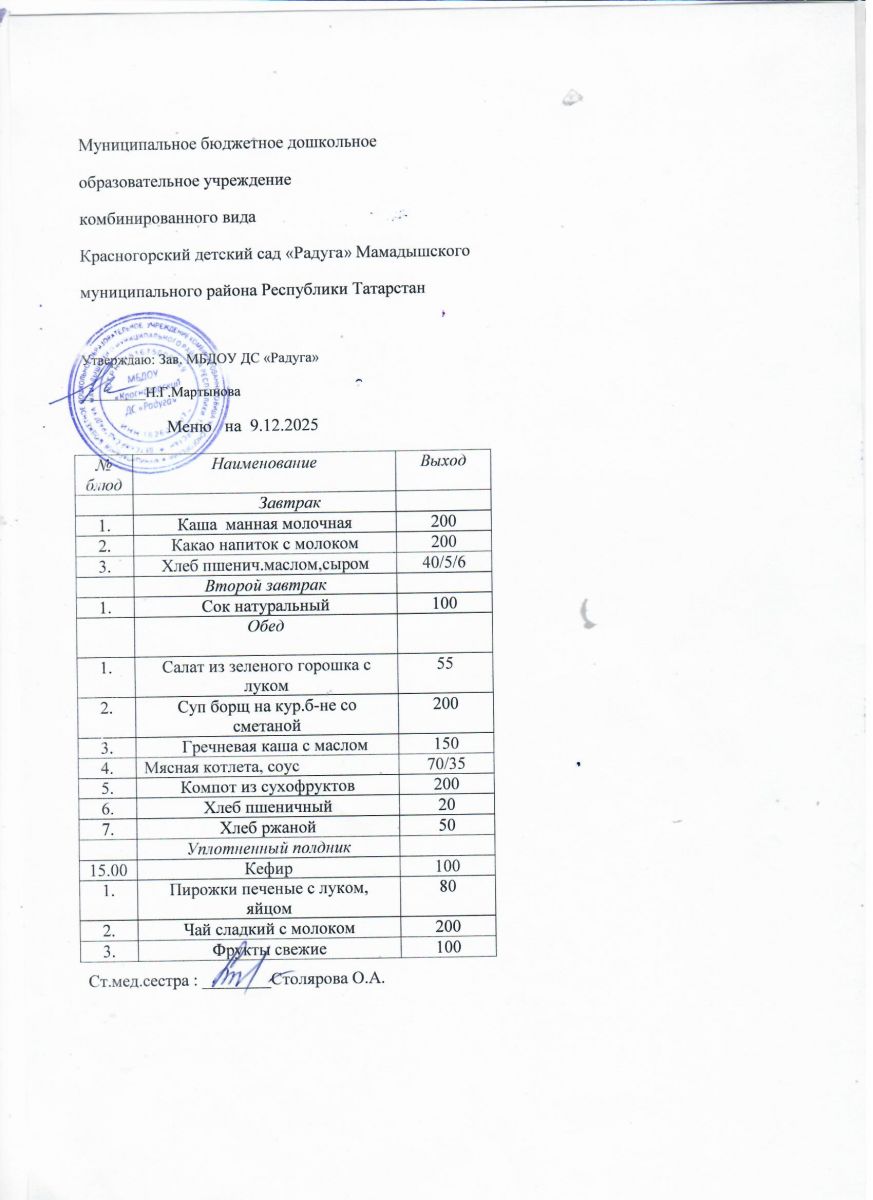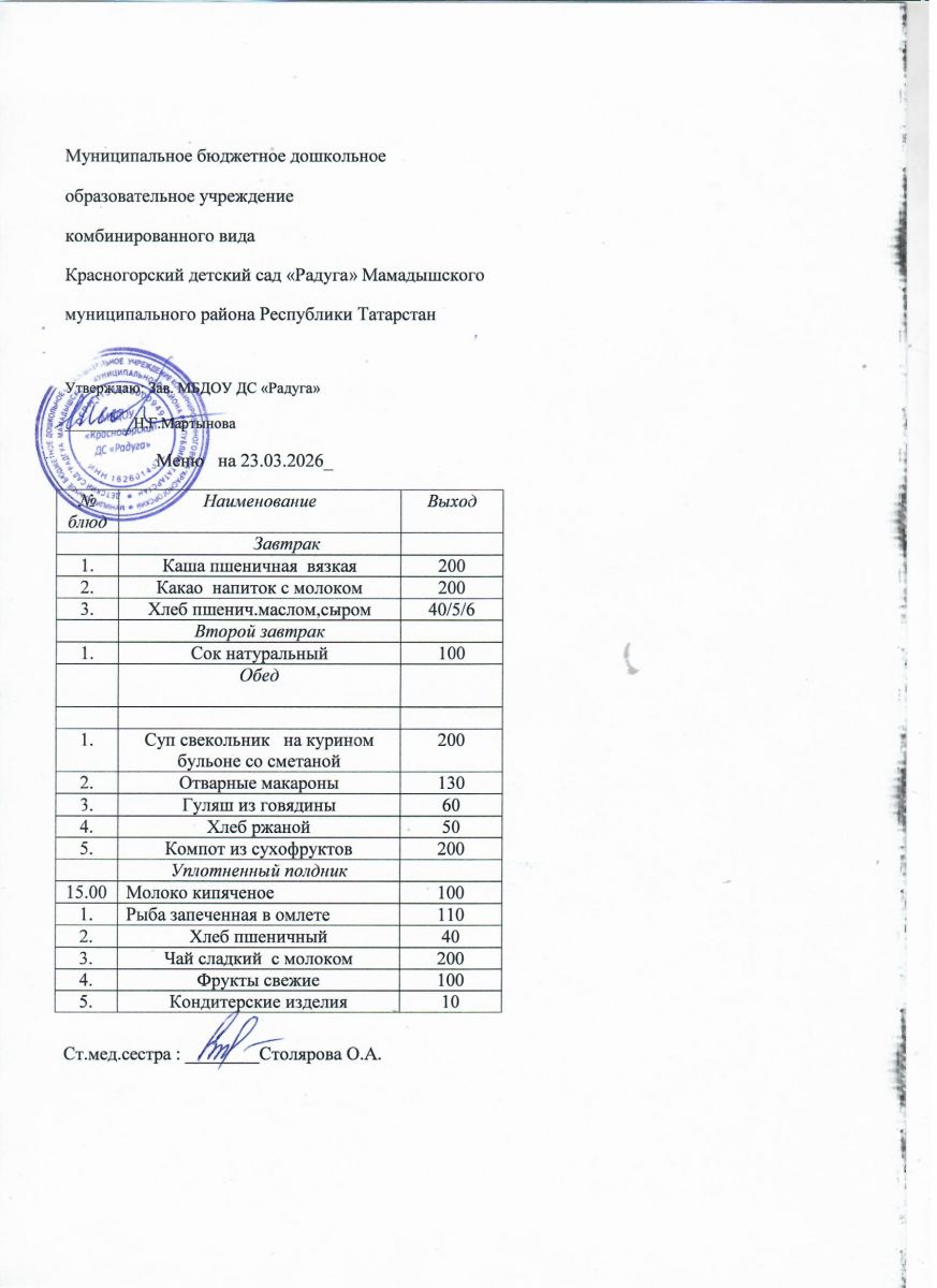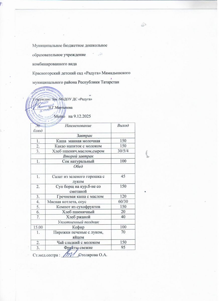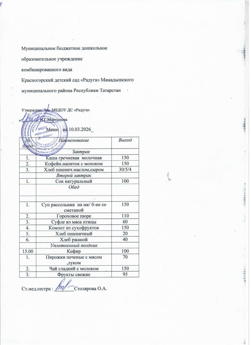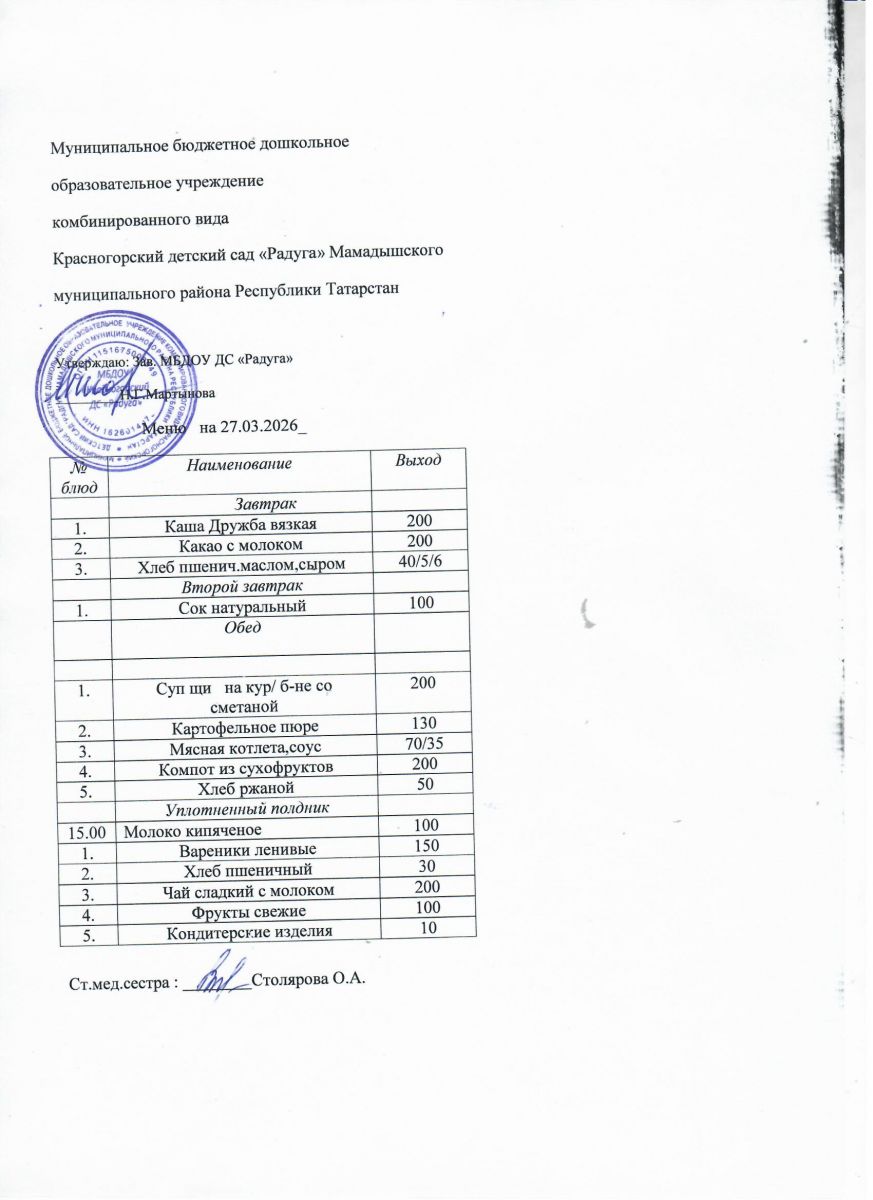 Муниципальное бюджетное дошкольное образовательное учреждение комбинированного вида «Красногорский детский сад «Радуга» Мамадышского муниципального района РТ