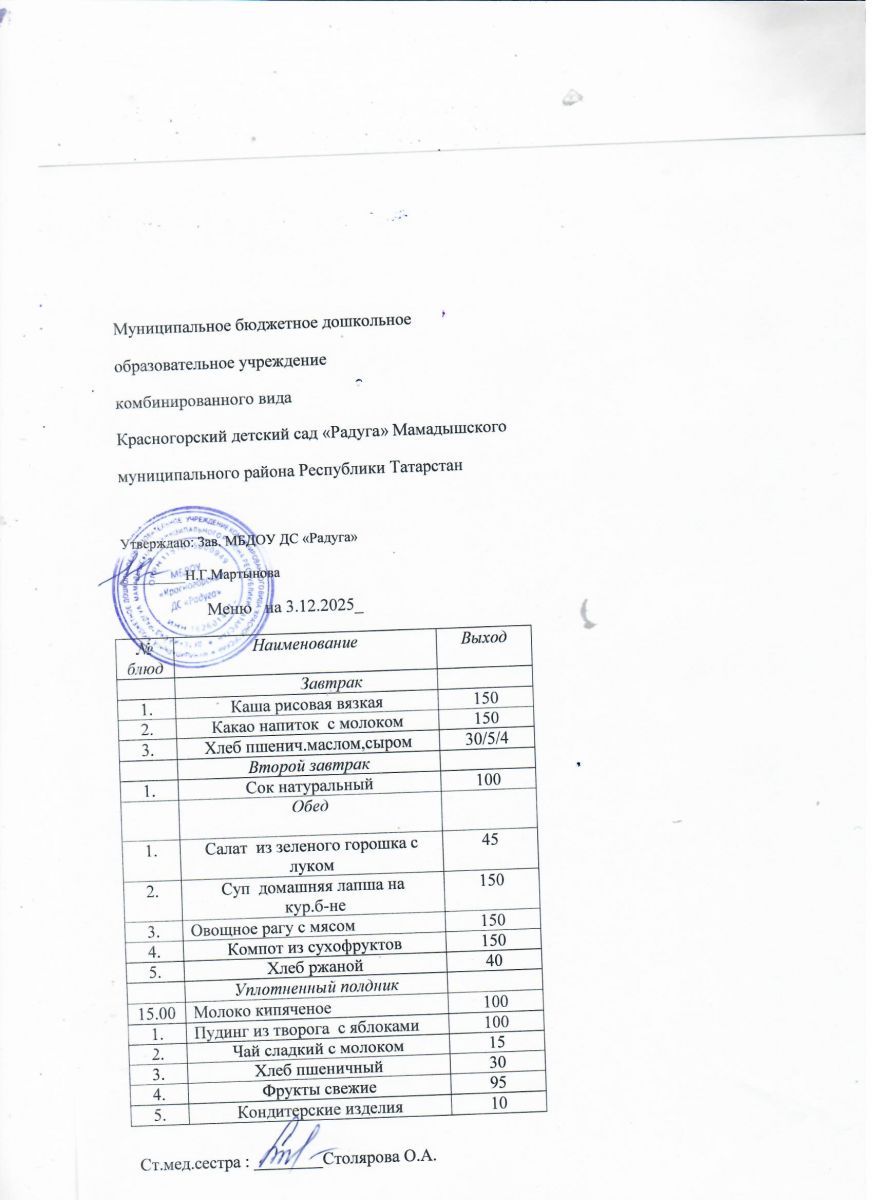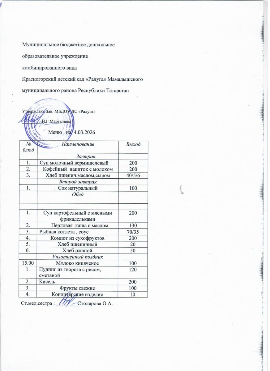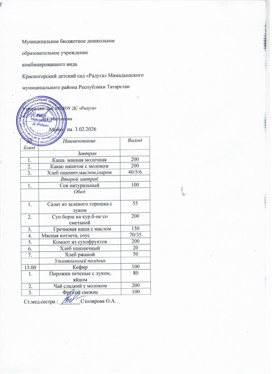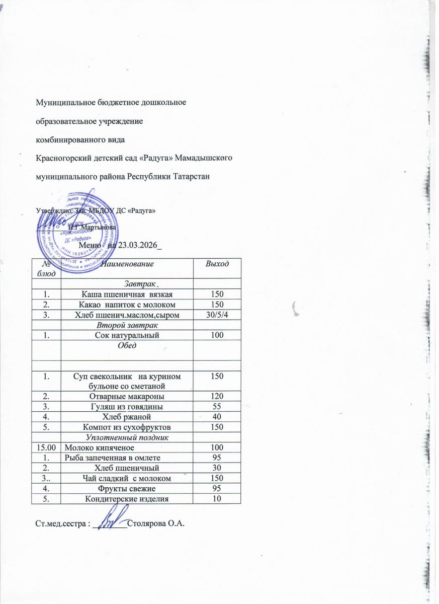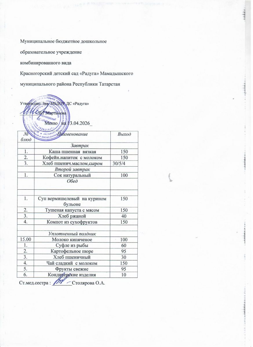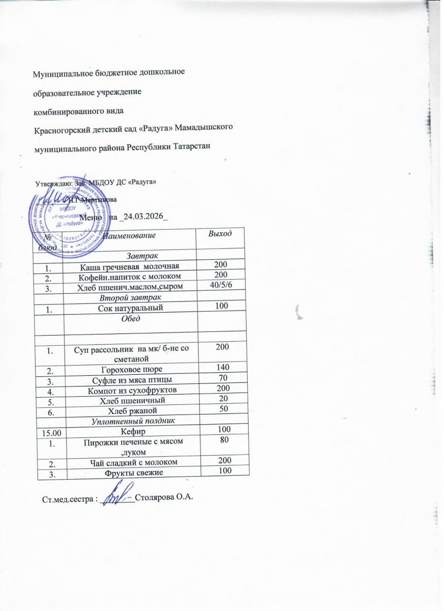 Муниципальное бюджетное дошкольное образовательное учреждение комбинированного вида «Красногорский детский сад «Радуга» Мамадышского муниципального района РТ
