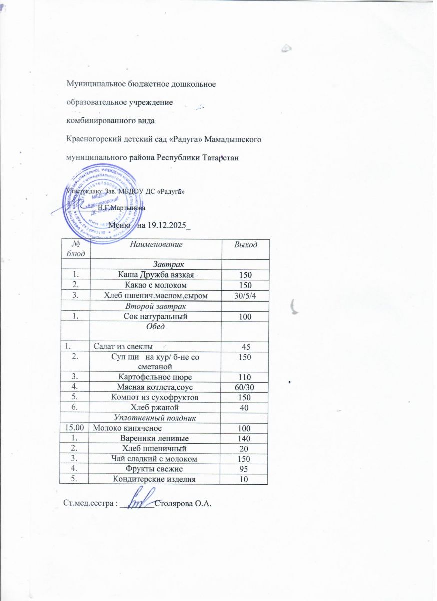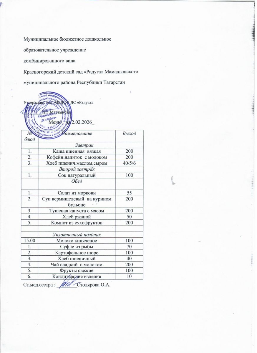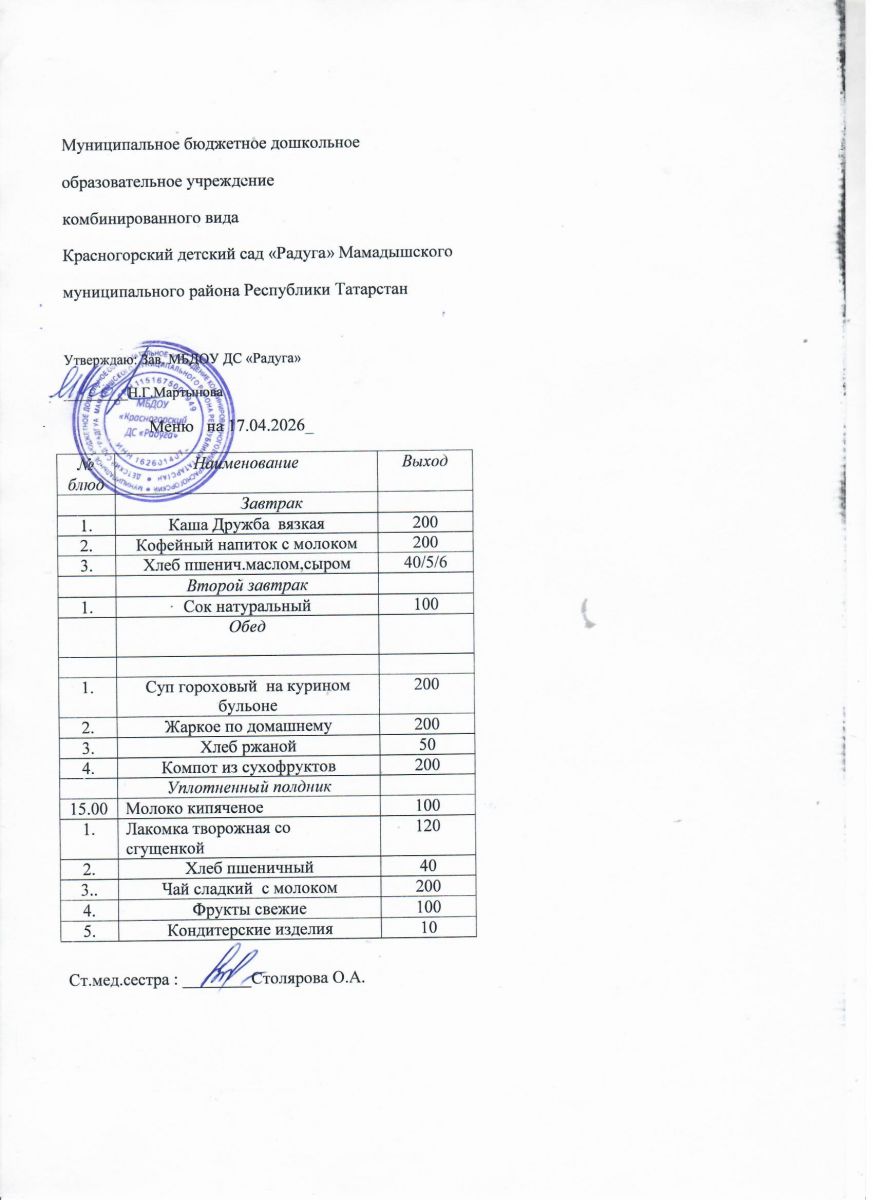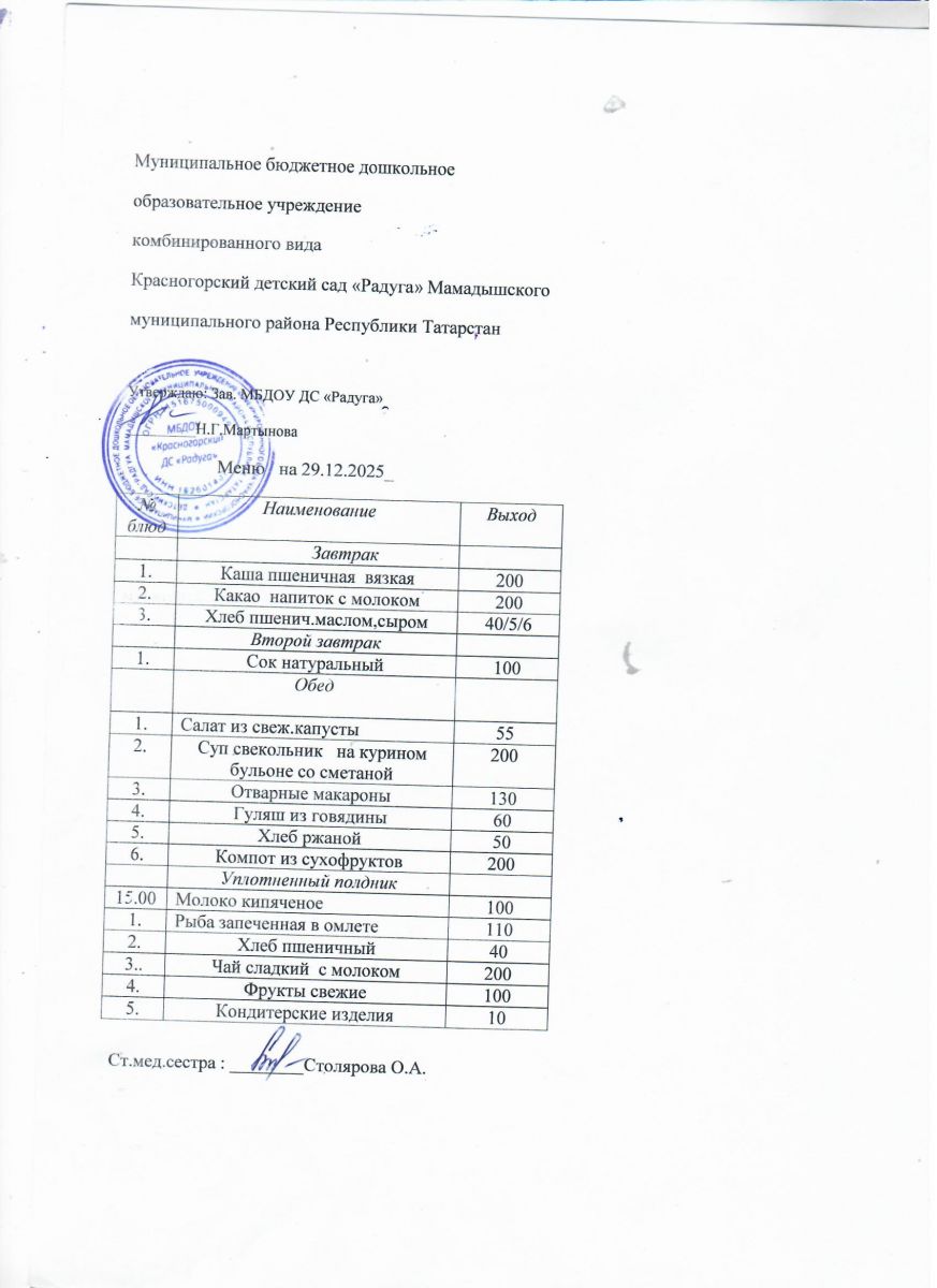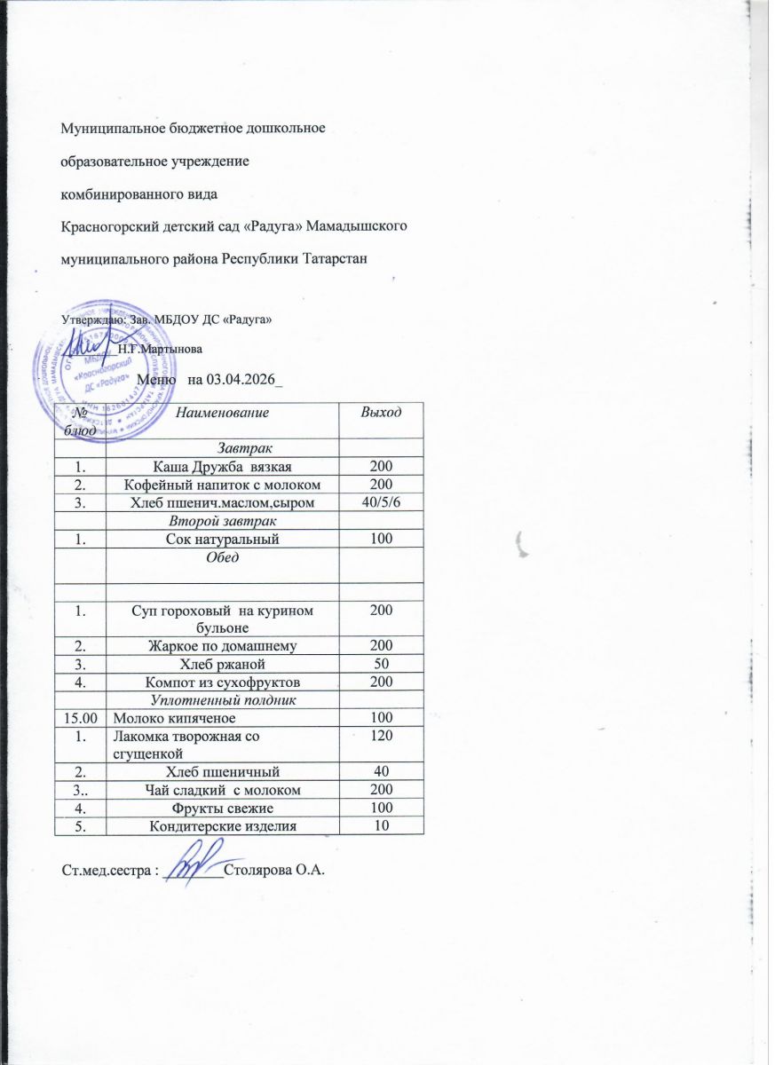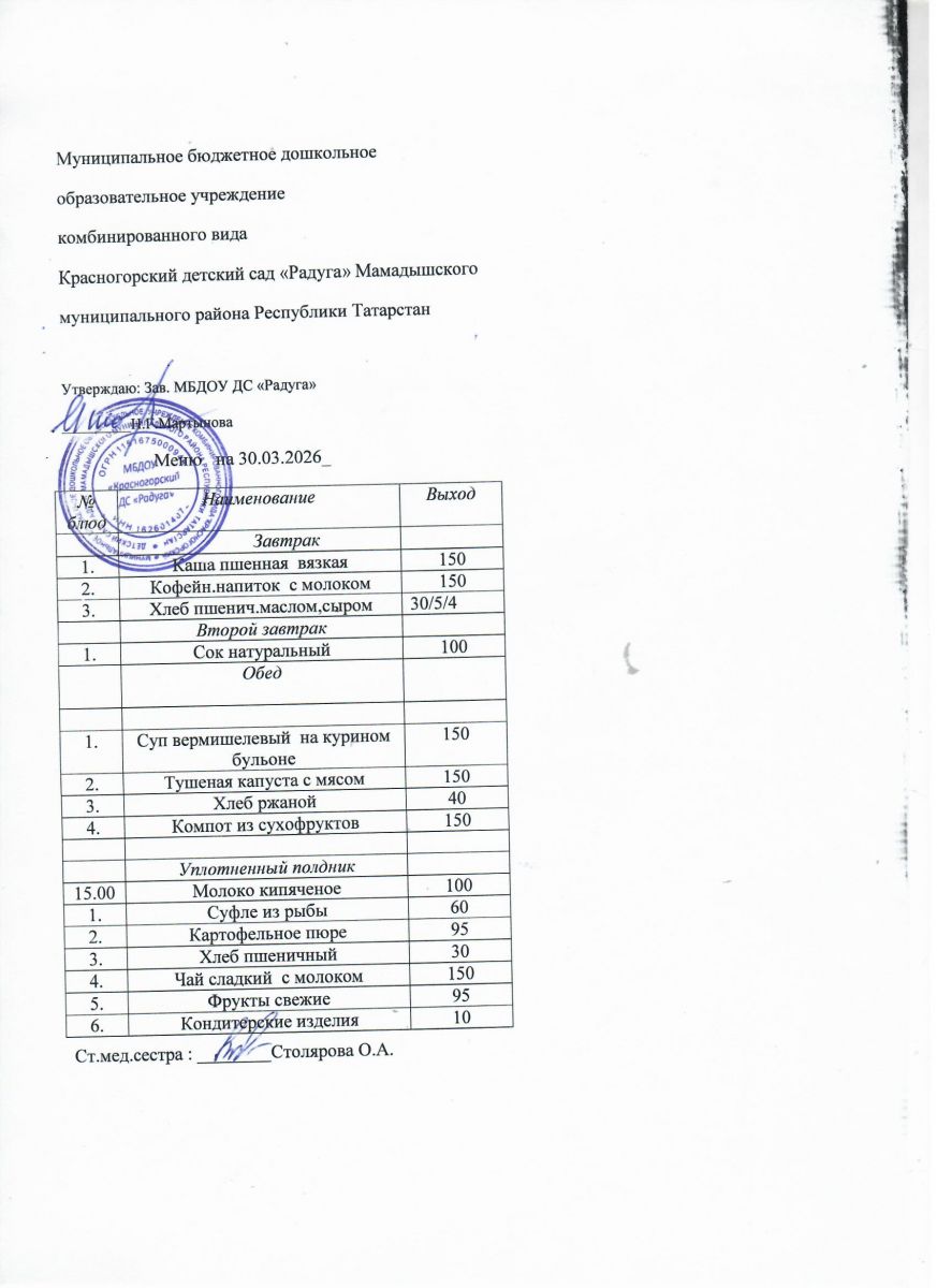 Муниципальное бюджетное дошкольное образовательное учреждение комбинированного вида «Красногорский детский сад «Радуга» Мамадышского муниципального района РТ